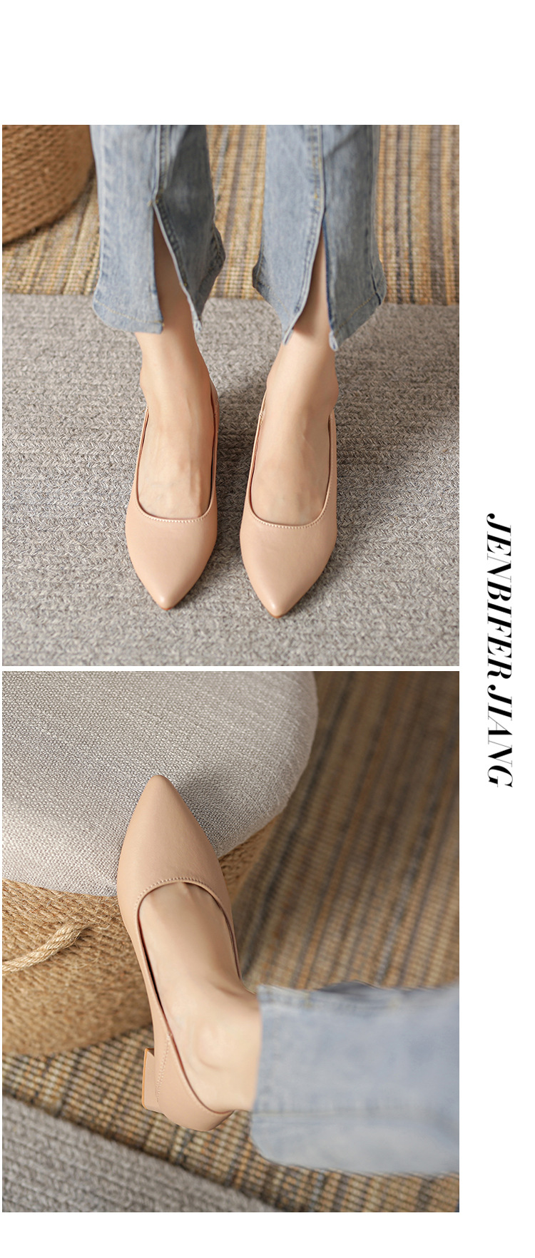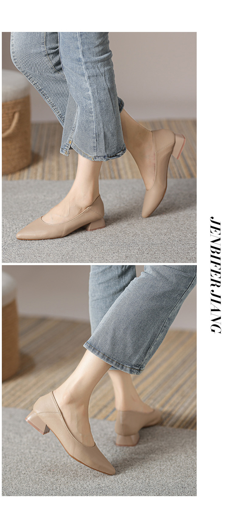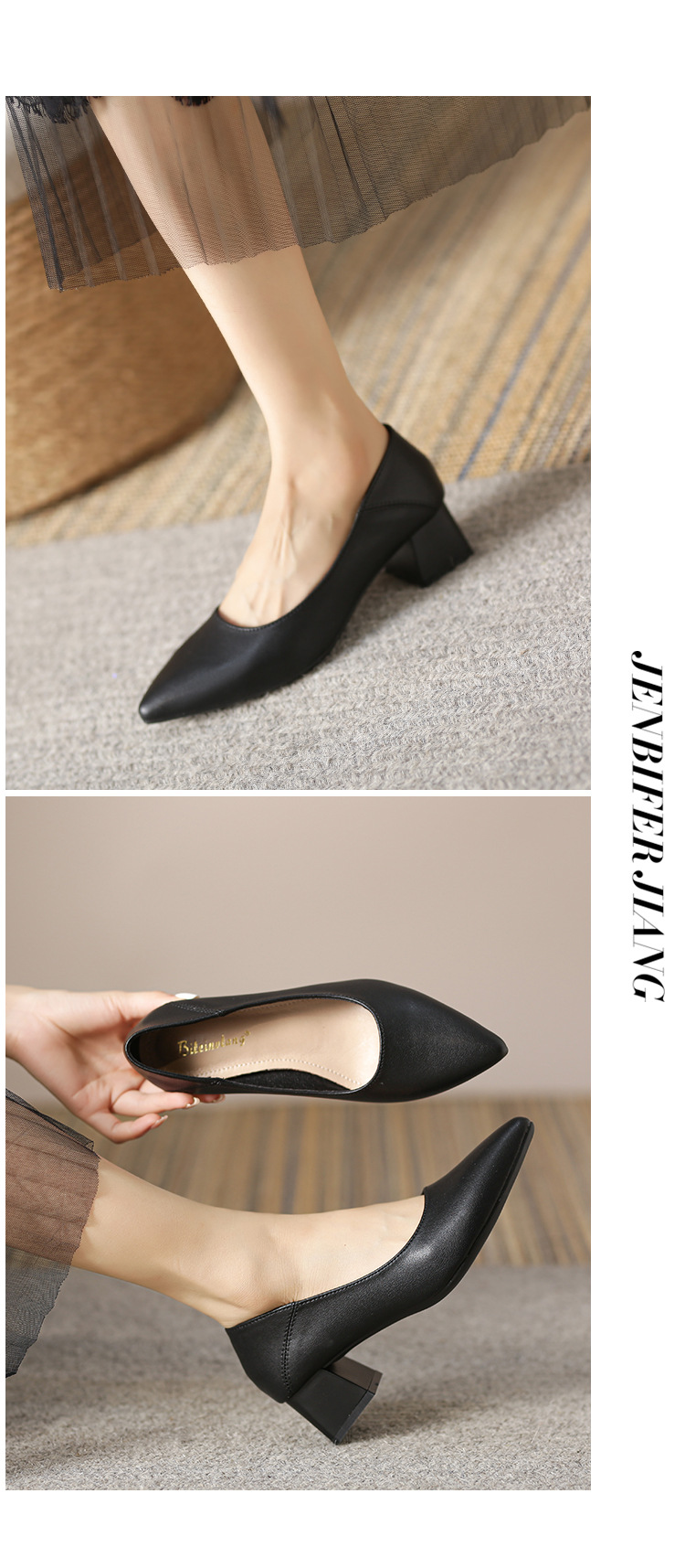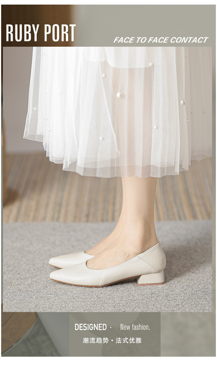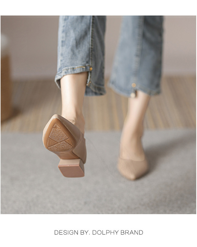뾰족한 청키 힐 얕은 입 싱글 레이어 신발 여성용 2023 봄과 가을 새로운 사이버 연예인 모든 매치 소프트 로우 힐 신발 블랙 작업 신발스토어 가기