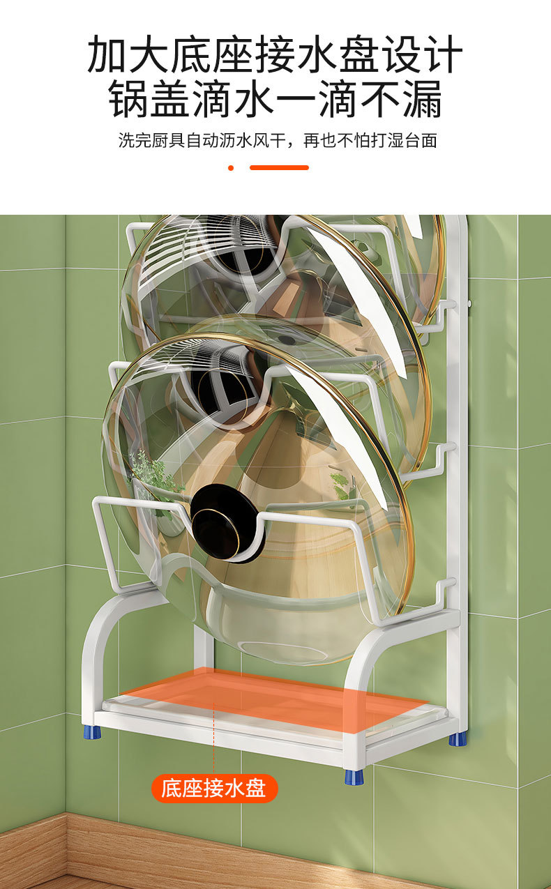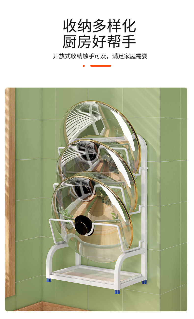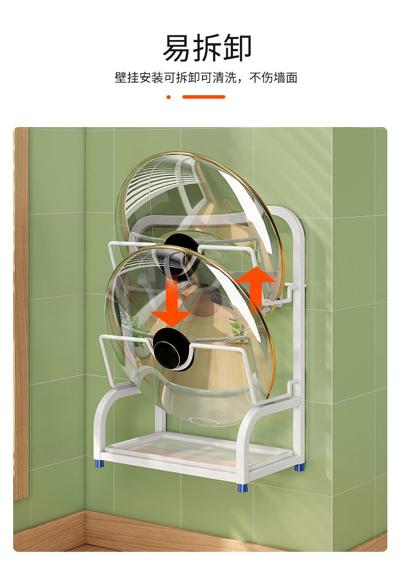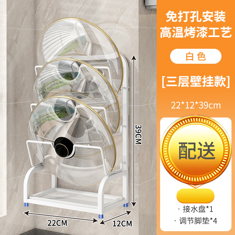 • 흰색 3 층 벽걸이 형 냄비 커버 랙