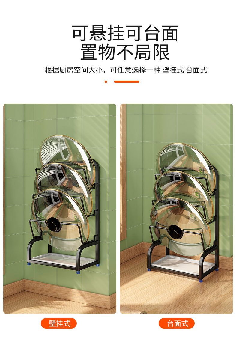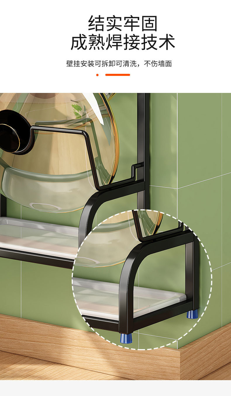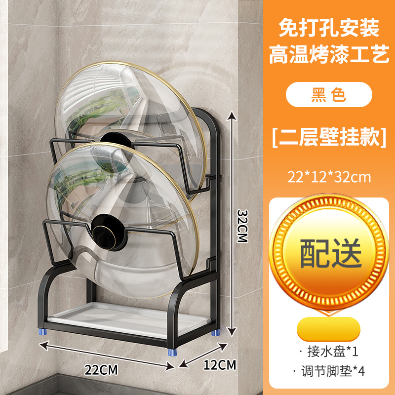 • 블랙 2 층 벽걸이 형 냄비 커버 랙