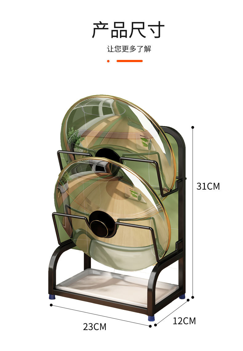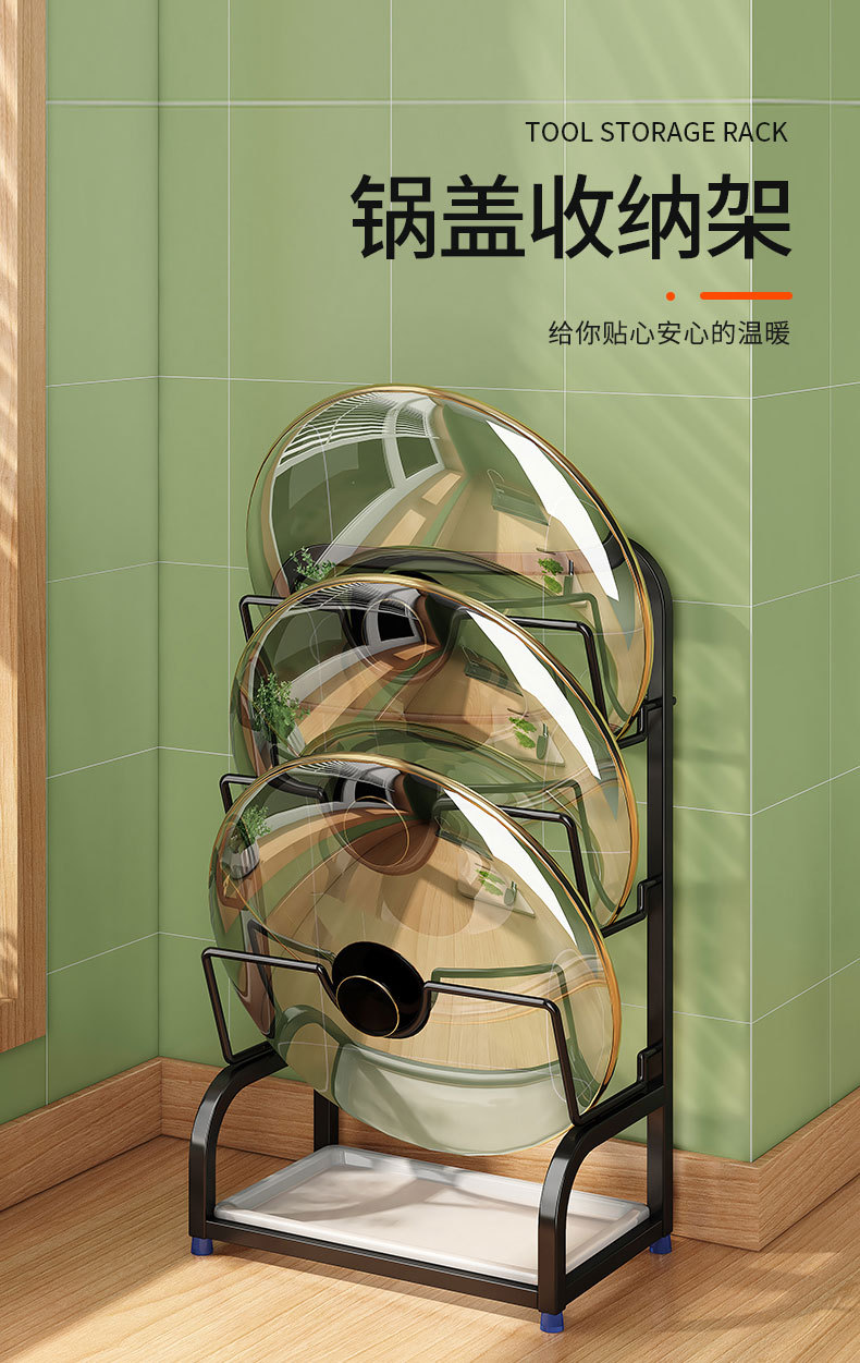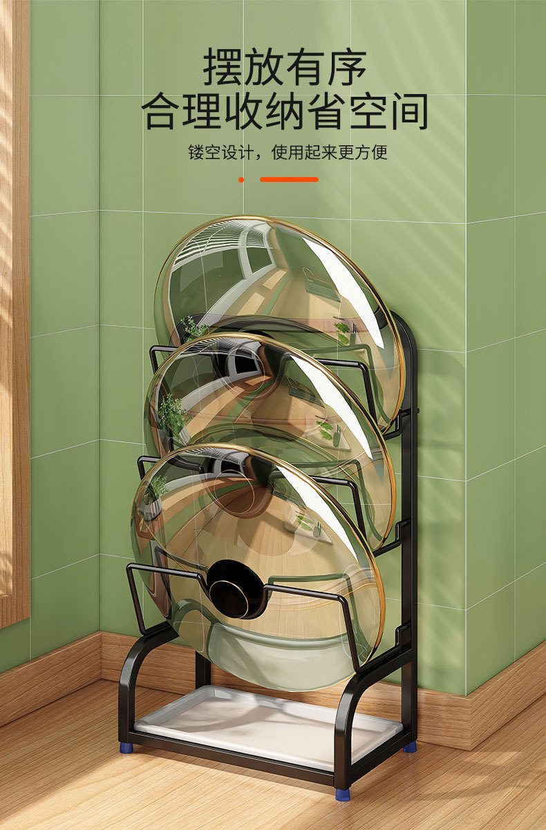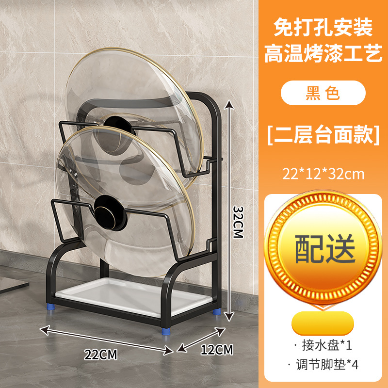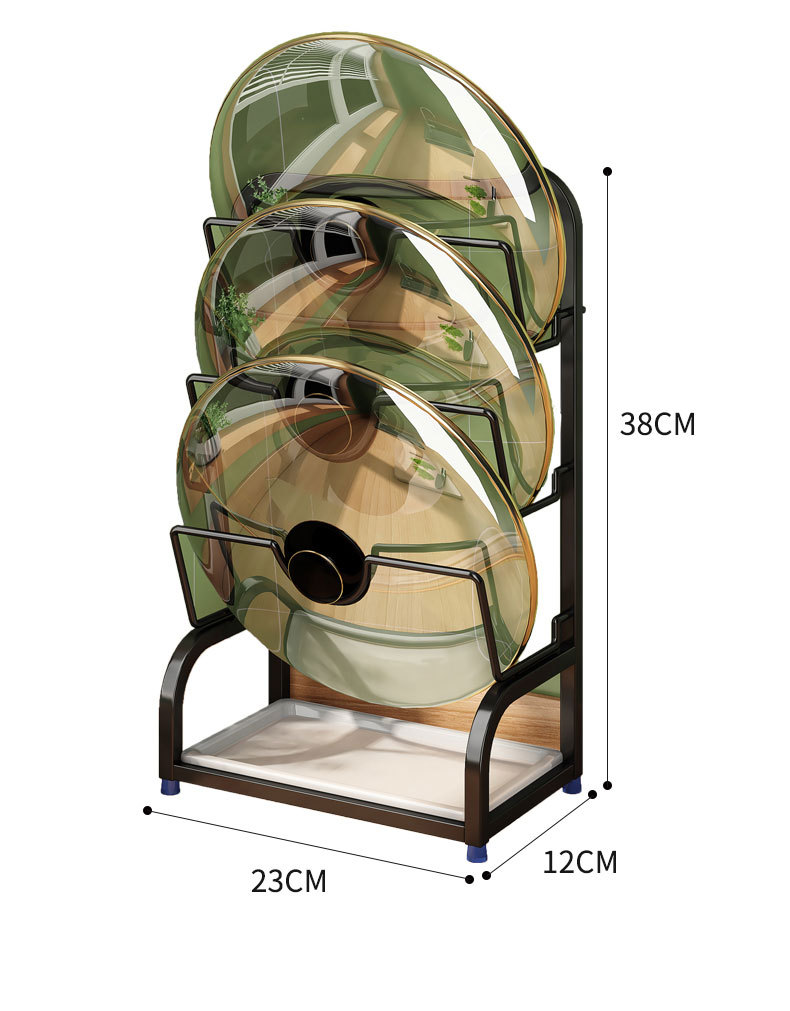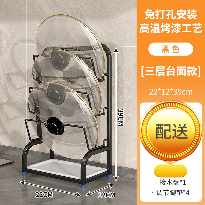 • 블랙 3 층 조리대 냄비 뚜껑 랙