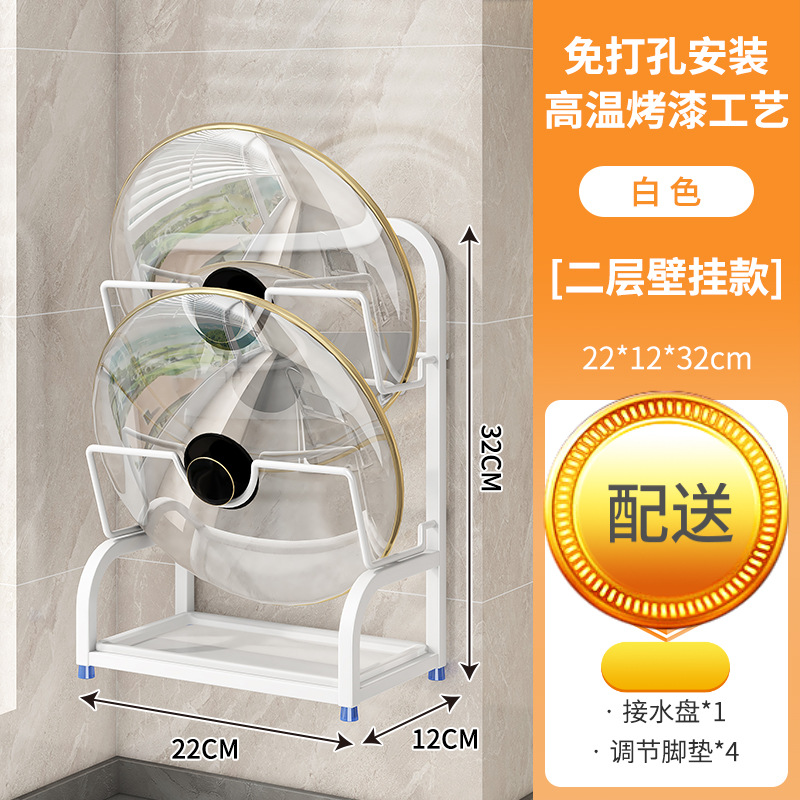 • 흰색 2 층 벽걸이 형 냄비 커버 랙