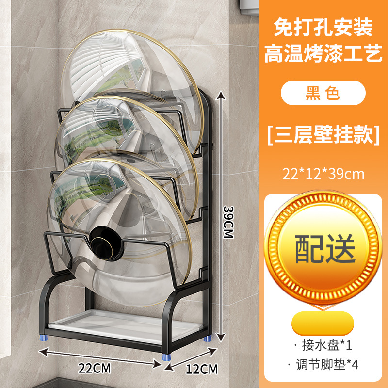 • 블랙 3 층 벽걸이 형 냄비 커버 랙