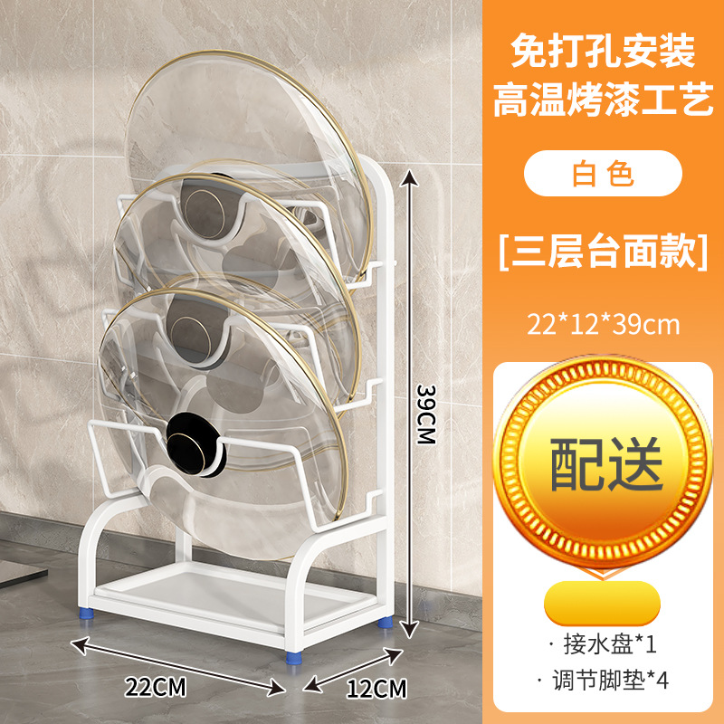 • 흰색 3 층 조리대 냄비 뚜껑 랙