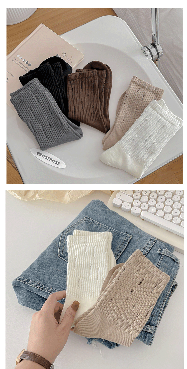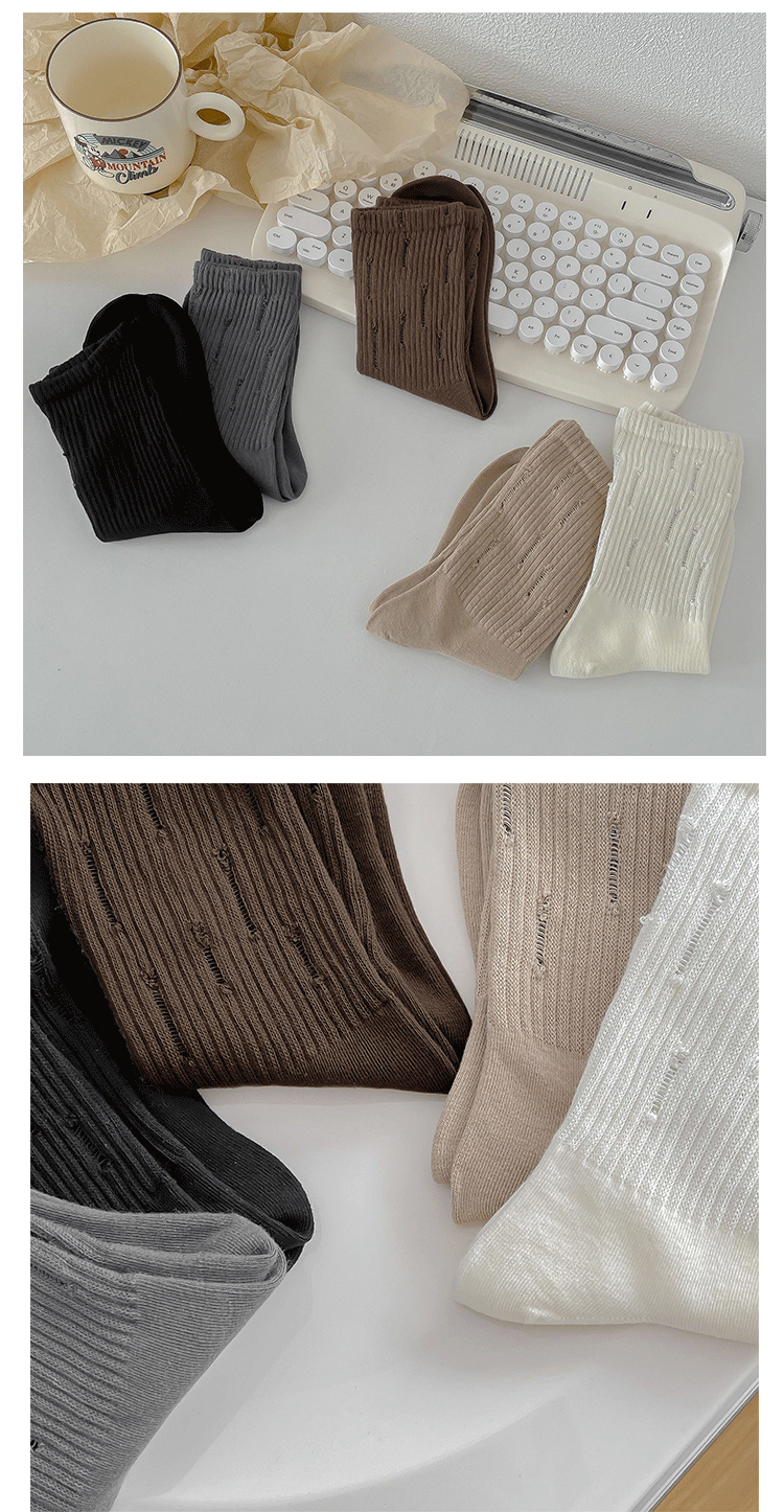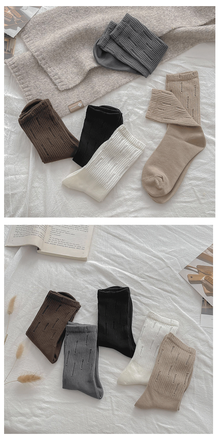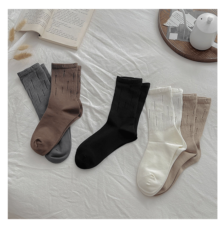 Ji Four 코끼리 양말 여성 가을과 겨울 새로운 한국식 찢어진 중간 길이 양말 빗질 면 단색 학생 양말 만능 말단 양말스토어 가기