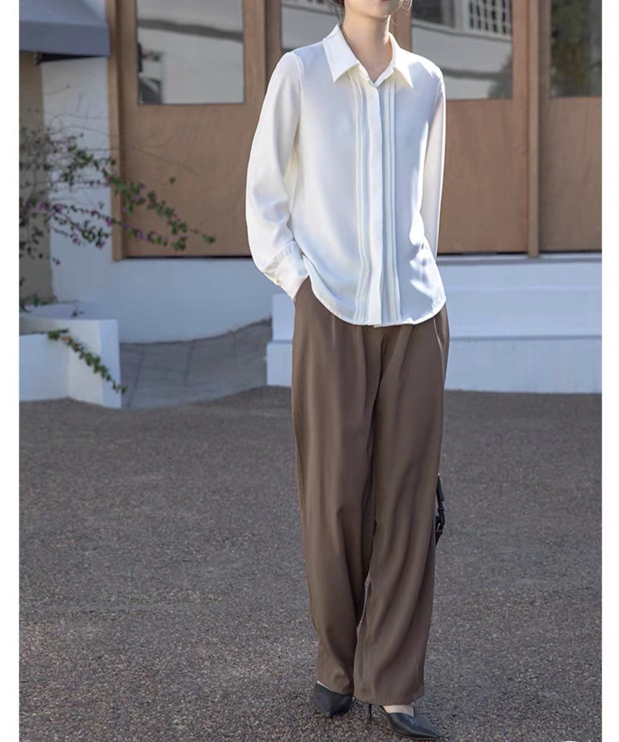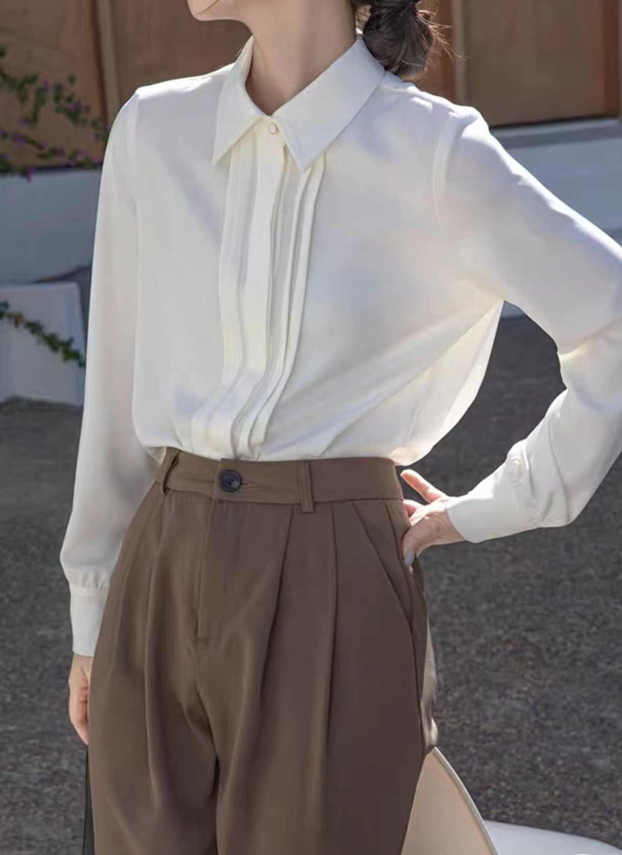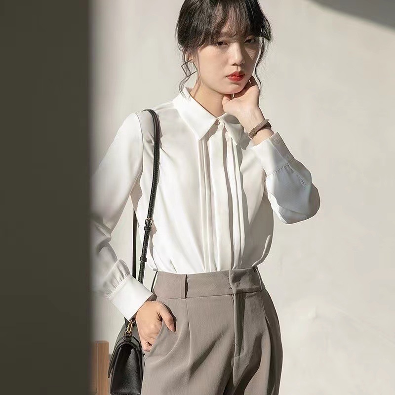 전문적인 쉬폰 긴팔 흰색 셔츠 여성용 봄 가을 신상 디자인 감각 있는 틈새 시장 스타일 정장 셔츠스토어 가기