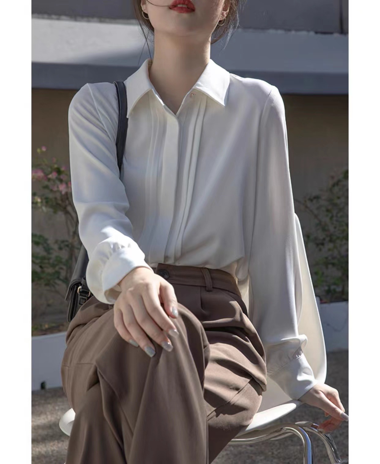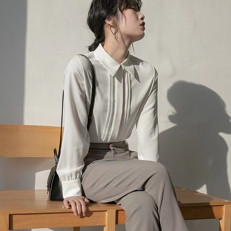 전문적인 쉬폰 긴팔 흰색 셔츠 여성용 봄 가을 신상 디자인 감각 있는 틈새 시장 스타일 정장 셔츠
