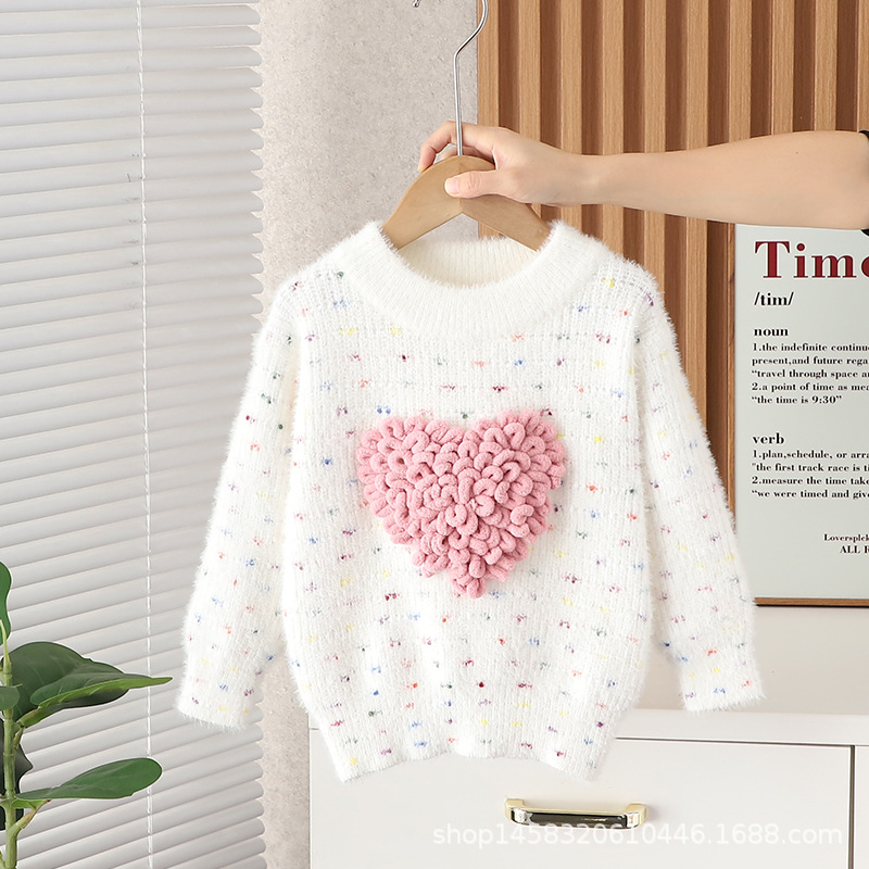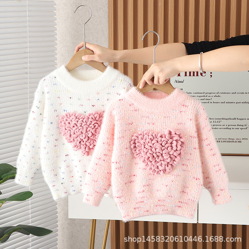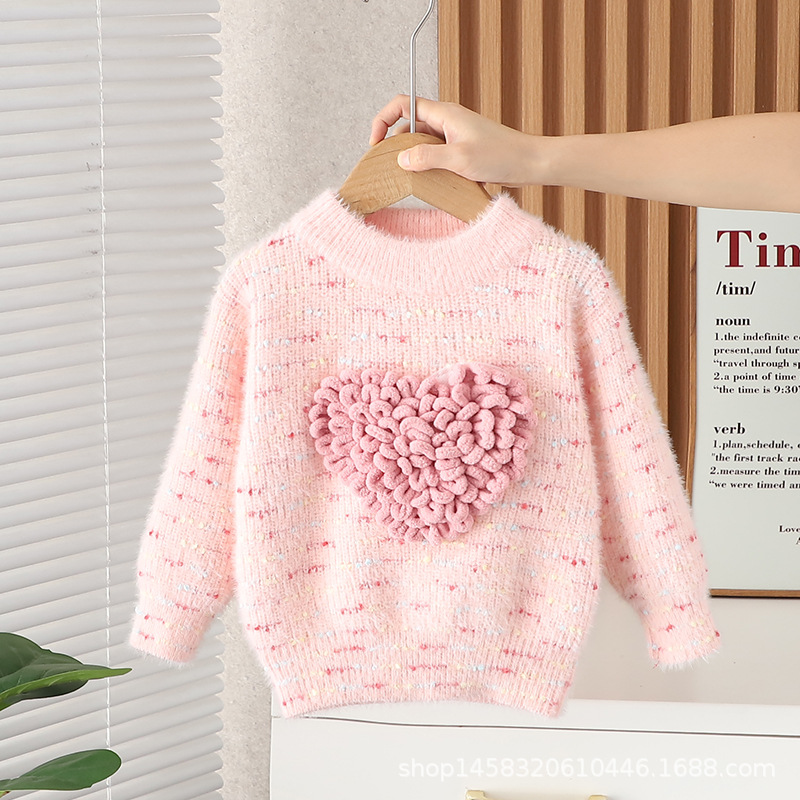 아기 소녀 가을, 겨울 의류 사랑 밍크 벨벳 스웨터 새로운 스타일 소녀의 두꺼운 겨울 탑 모직 스웨터스토어 가기