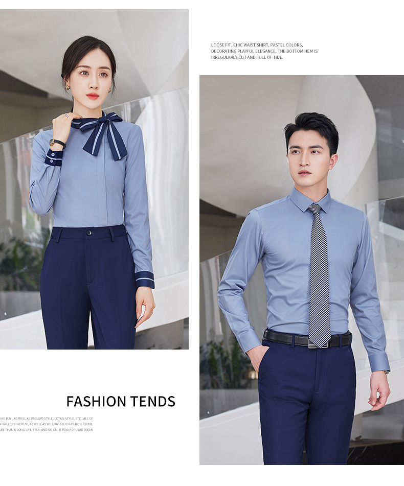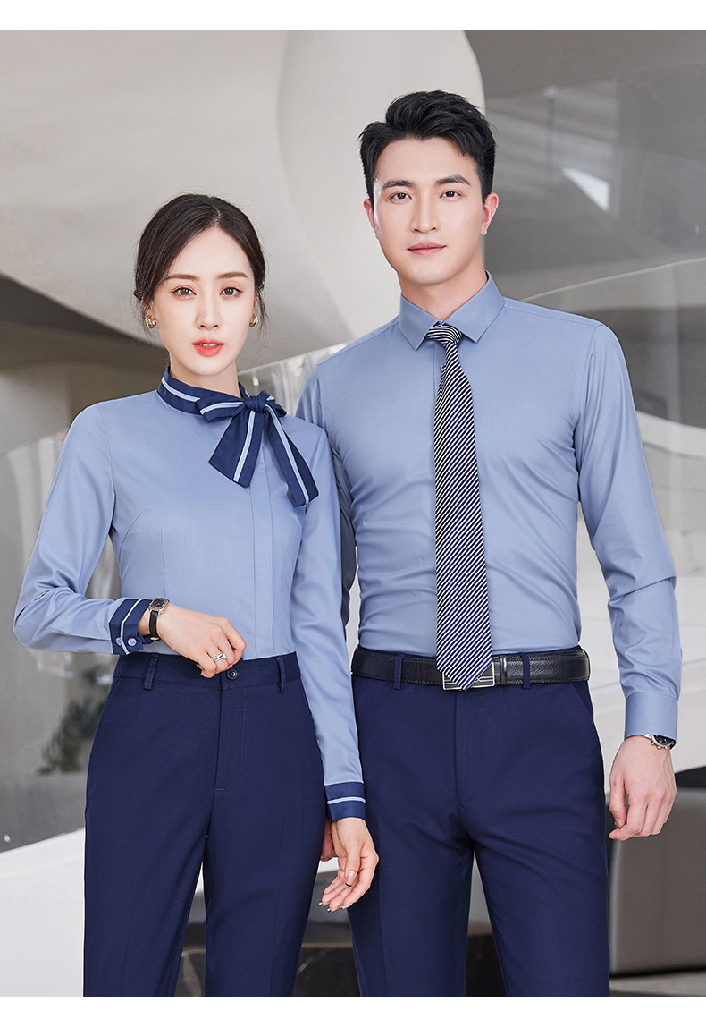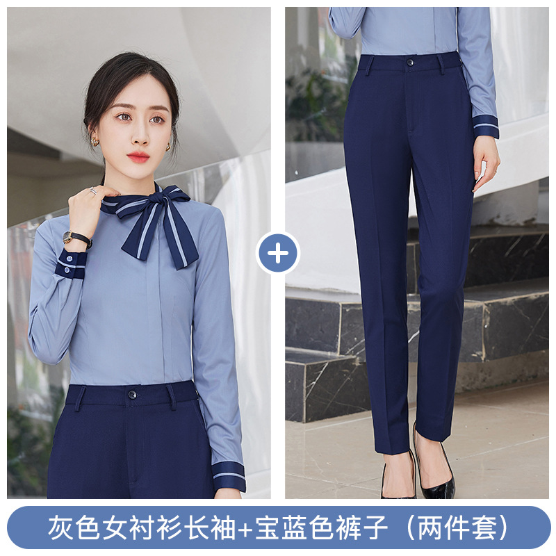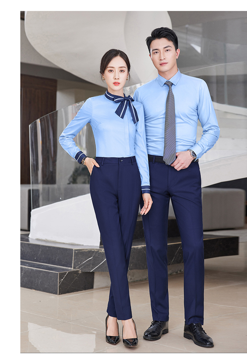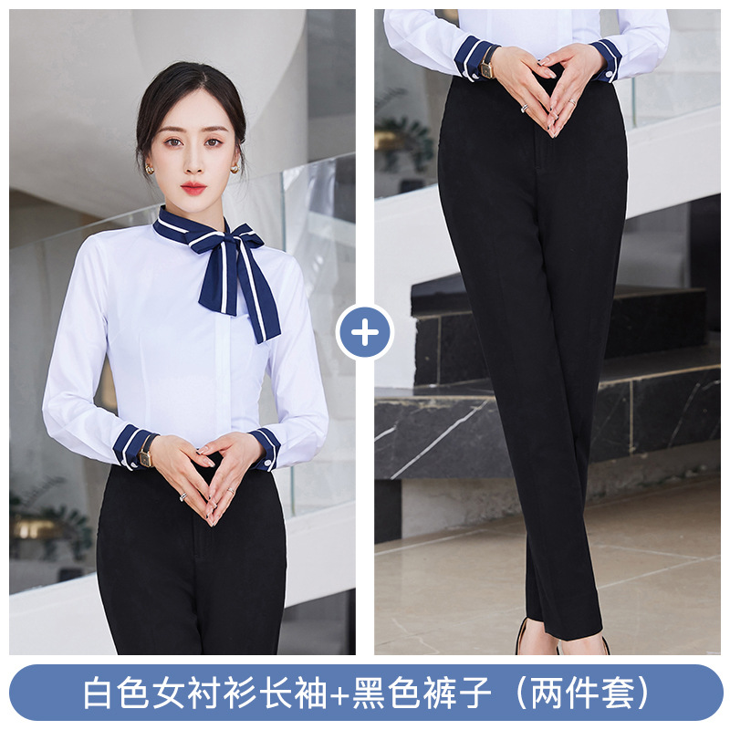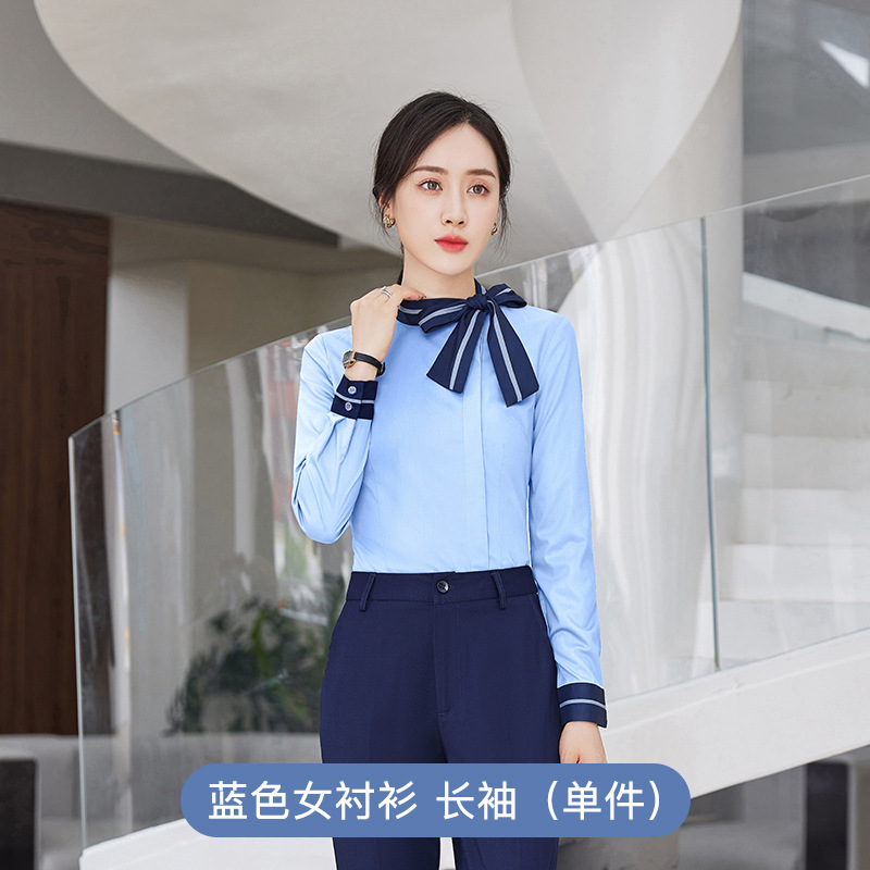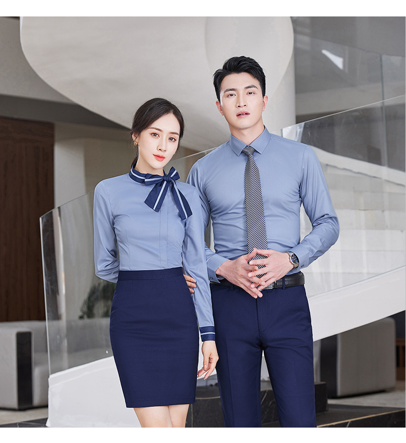 여자의 긴 소매 셔츠 작업복 가을과 겨울 같은 스타일 비즈니스 의류 남성과 여성 세트 호텔 프런트 데스크 셔츠 4s 상점스토어 가기