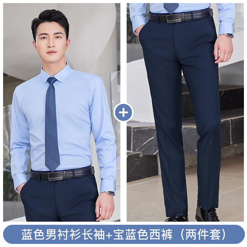 • 투피스 세트-남성용 블루 롱 셔츠 + 바지
