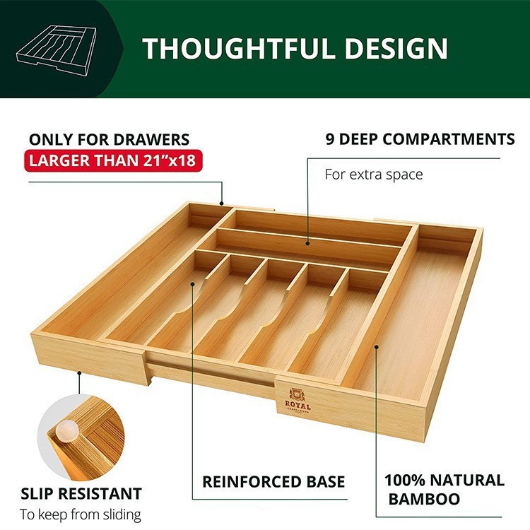 대나무 서랍 칸 수납 상자 가정용 주방 식기 마무리 상자 나무 칼과 포크 개폐식 보관 상자