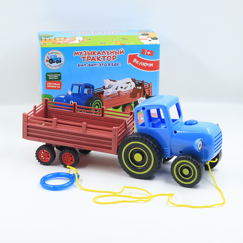 产品功能:蓝色拖拉机农夫车,内置3个纽扣电池,带大约12-15首俄文音乐,有3档开关(关闭,小音量,大音量)