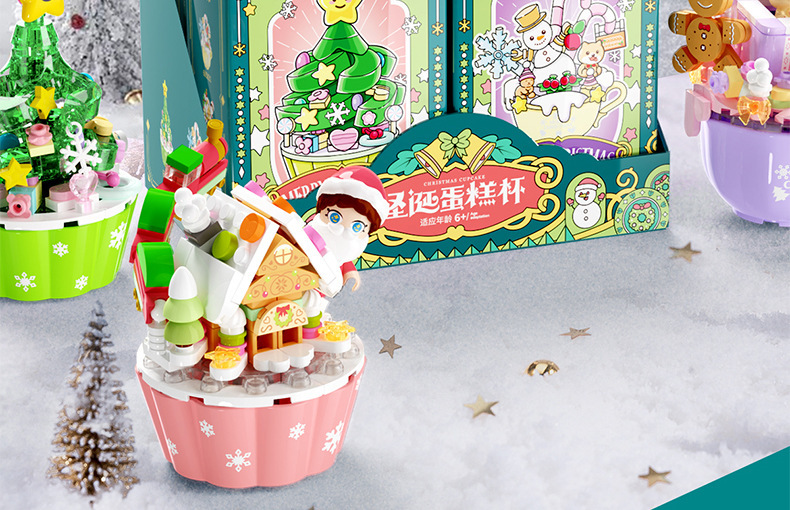 Senbao 크리스마스 트리 케이크 눈사람 진저 브레드 하우스 케이크 조립 모델 어린이 조립 빌딩 블록 조립 장난감 선물