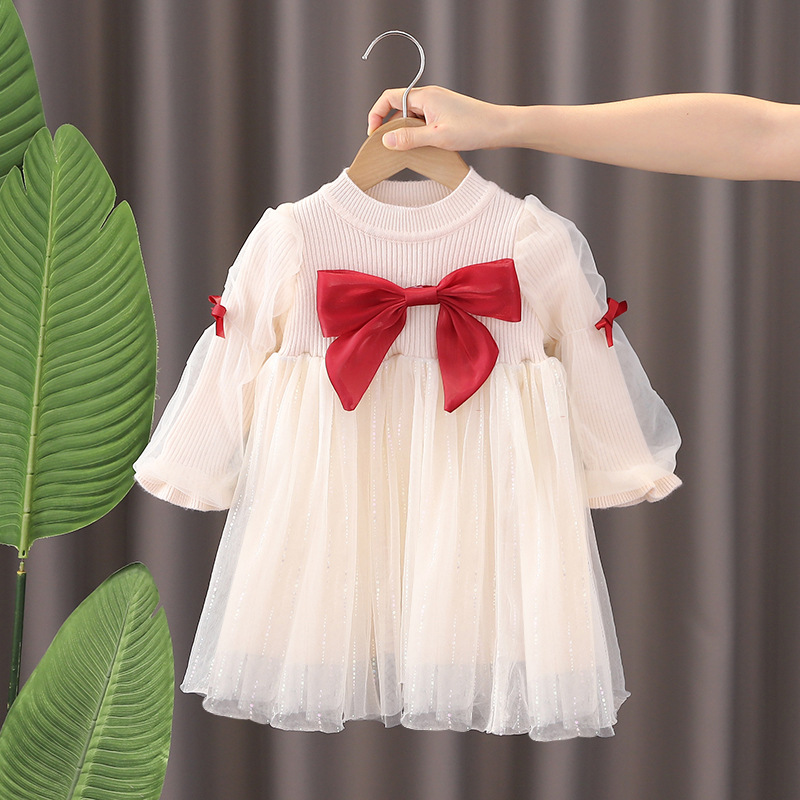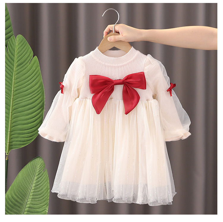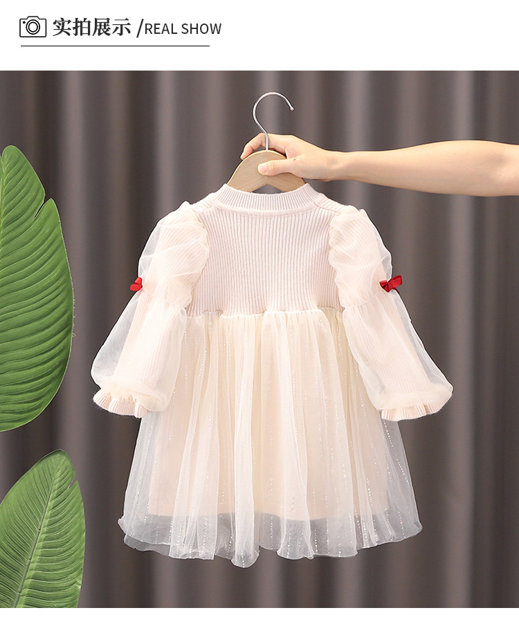 소녀의 니트 공주 원피스 가을과 겨울 아기 소녀의 스웨터 용기 원피스 새해 원피스 크리스마스 원피스 서양 스타일 어린이 의류 기모 원피스