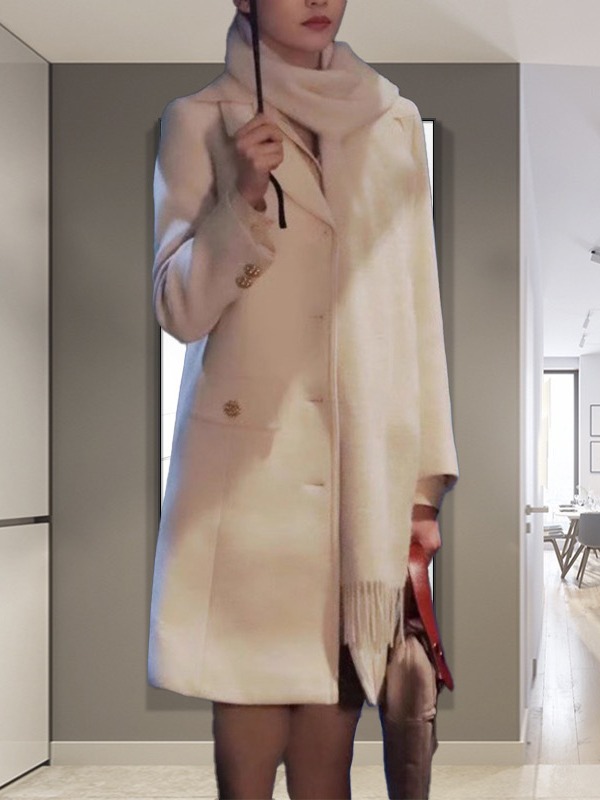 2025년 신상 모직 코트 화이트루와 같은 스타일의 흰색 모직 재킷 가을 겨울 레트로 라펠 중간 길이스토어 가기