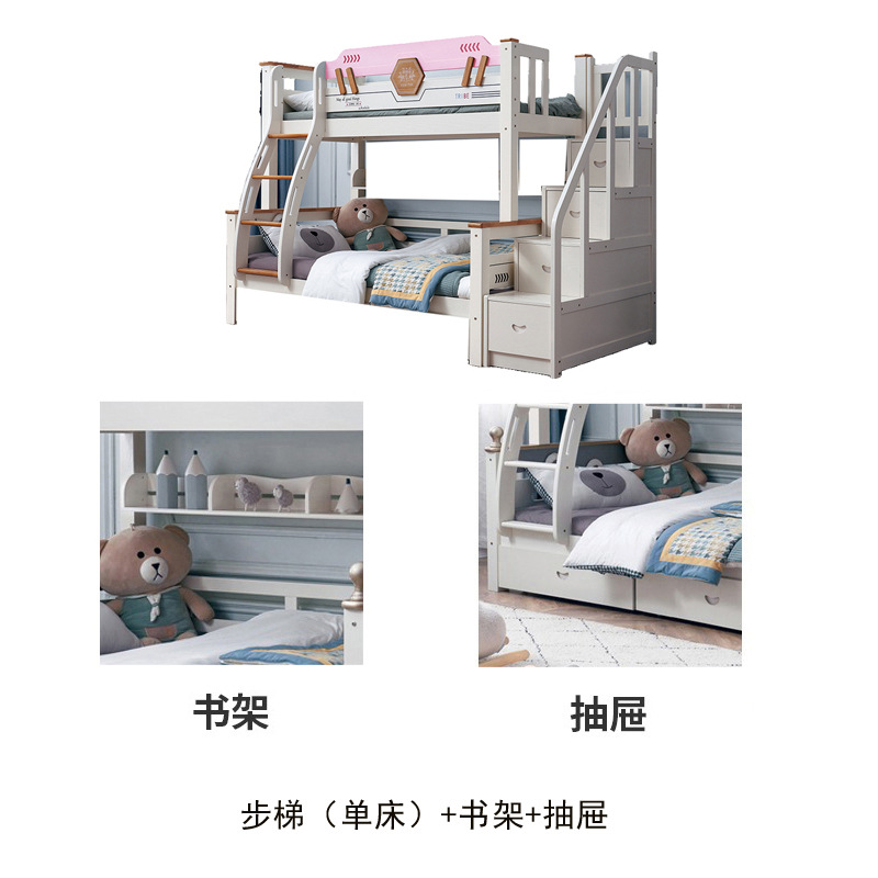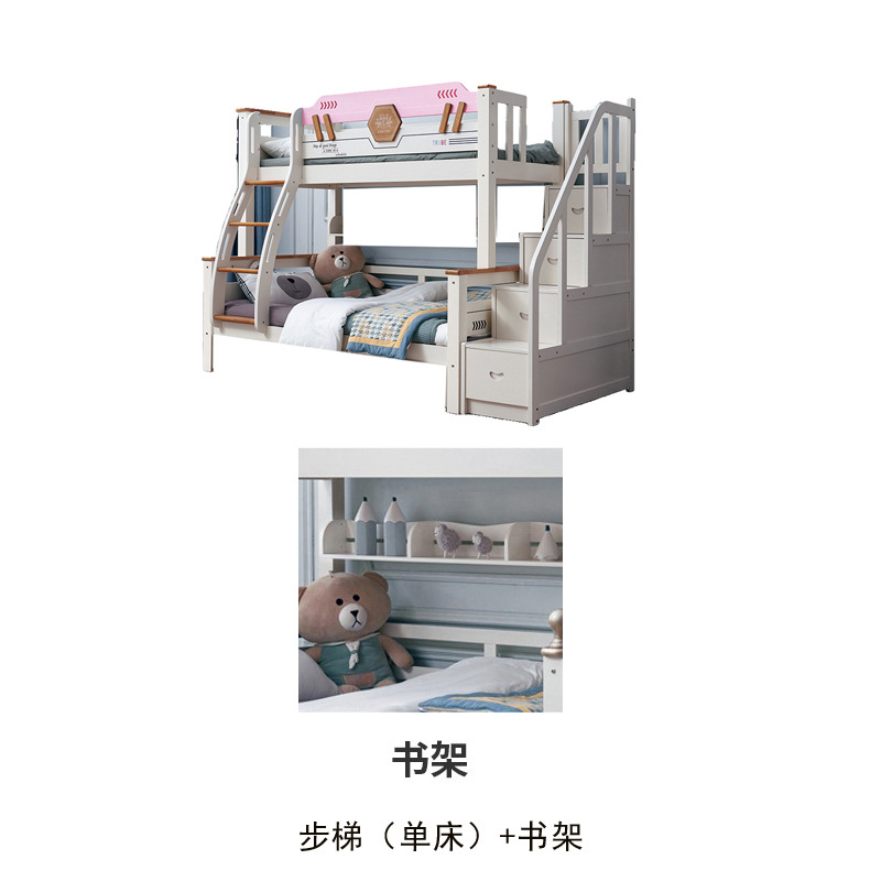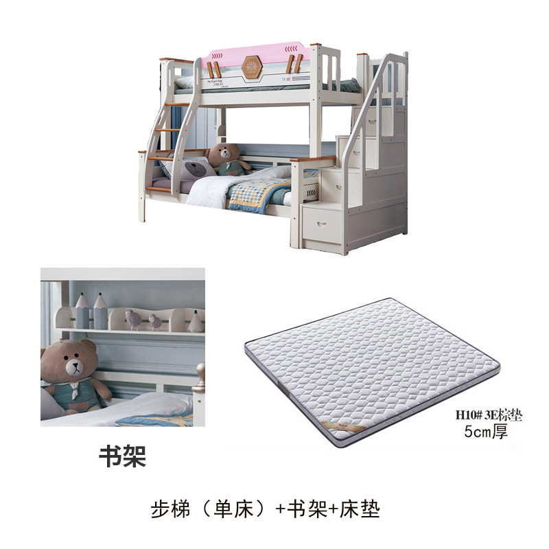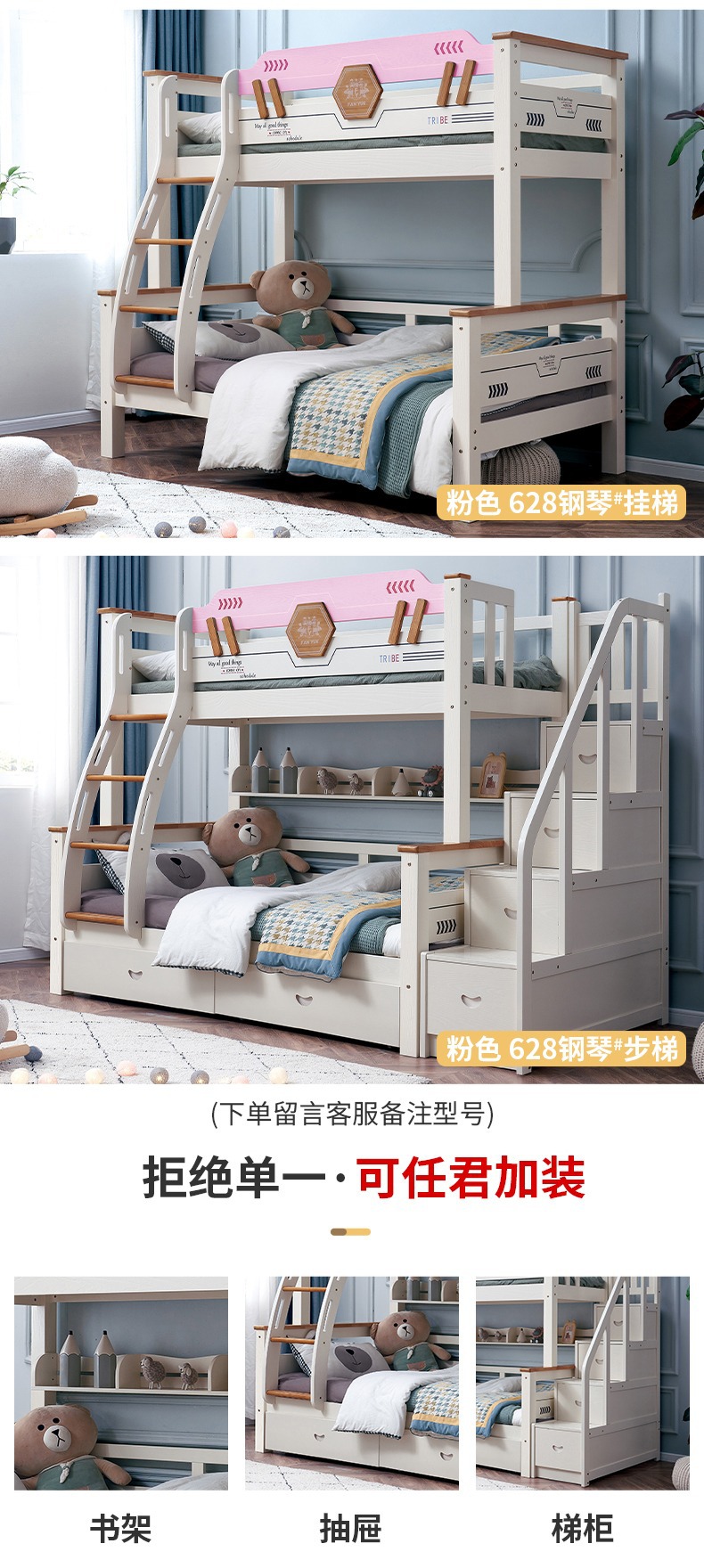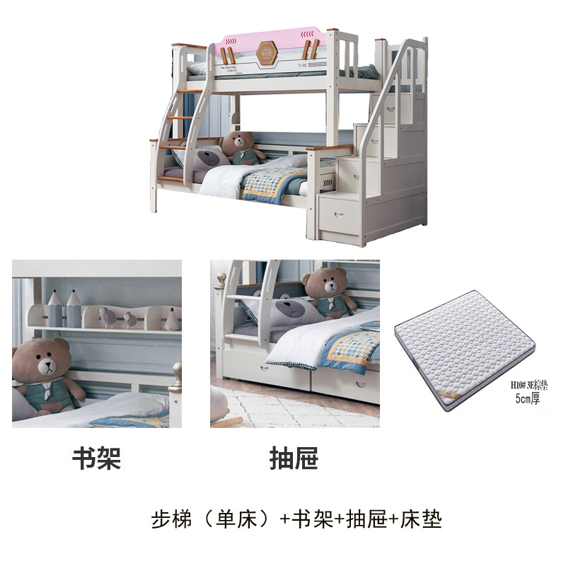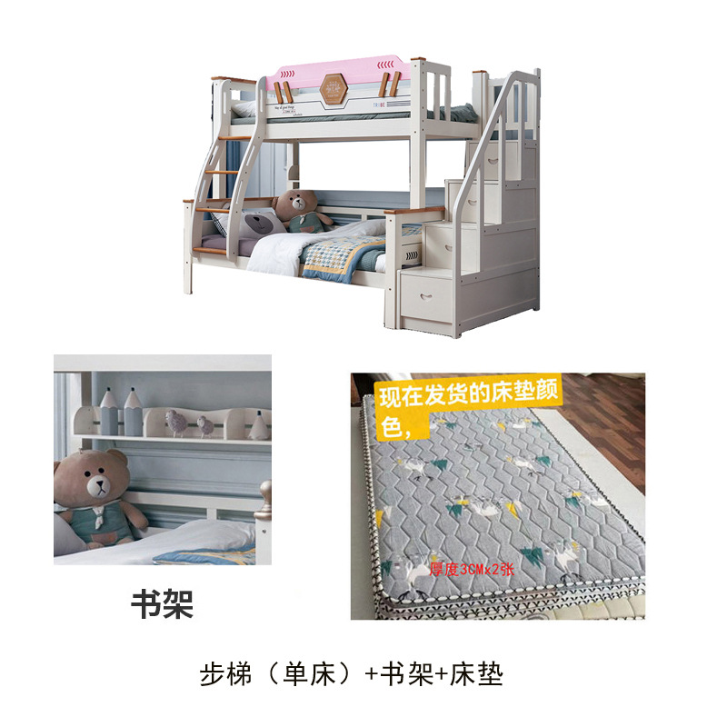 2 층 단단한 나무 침대 어린이 침대 더블 레이어 이층 침대 다기능 작은 아파트 높고 낮은 침대 색상