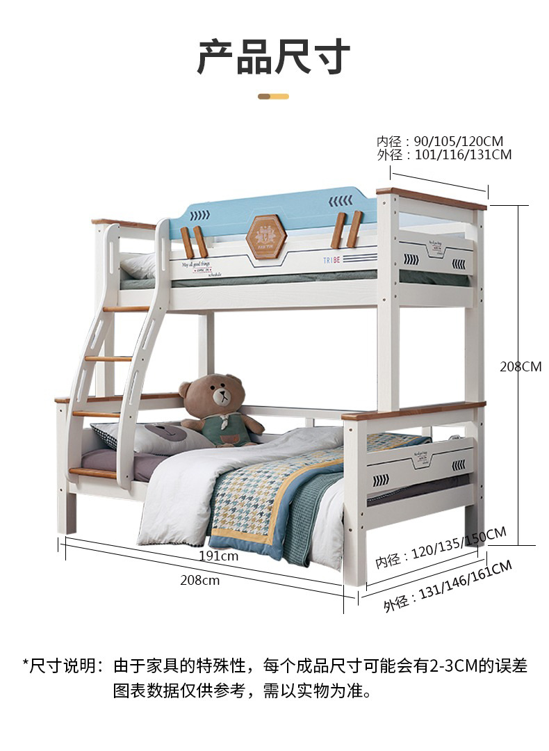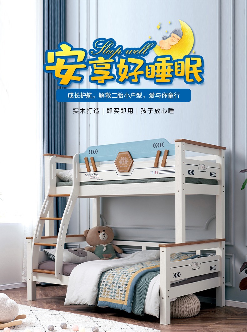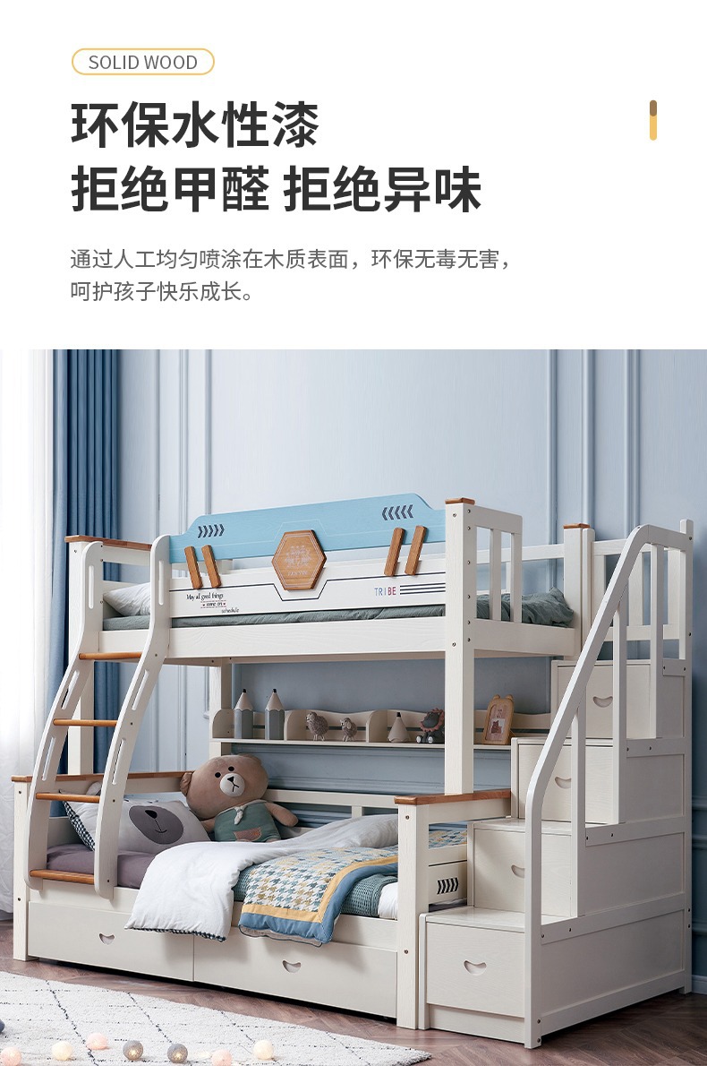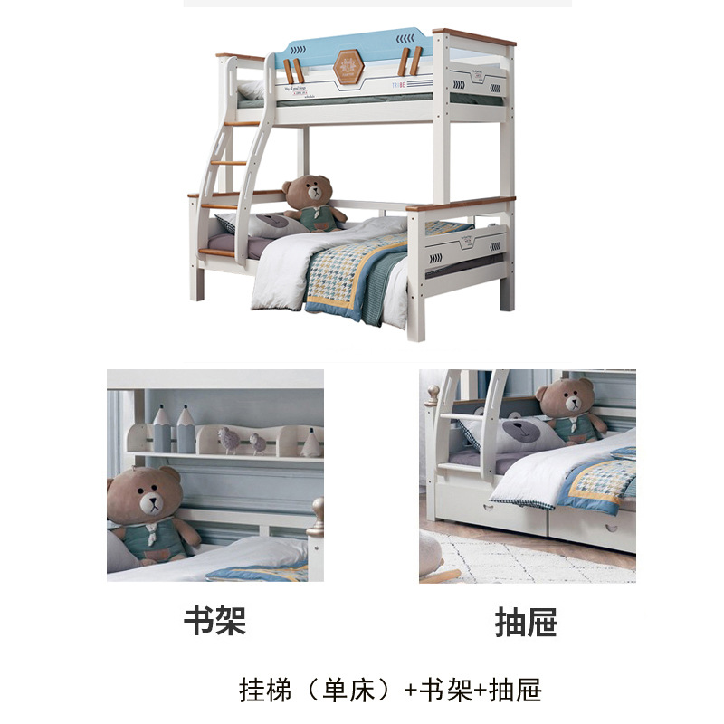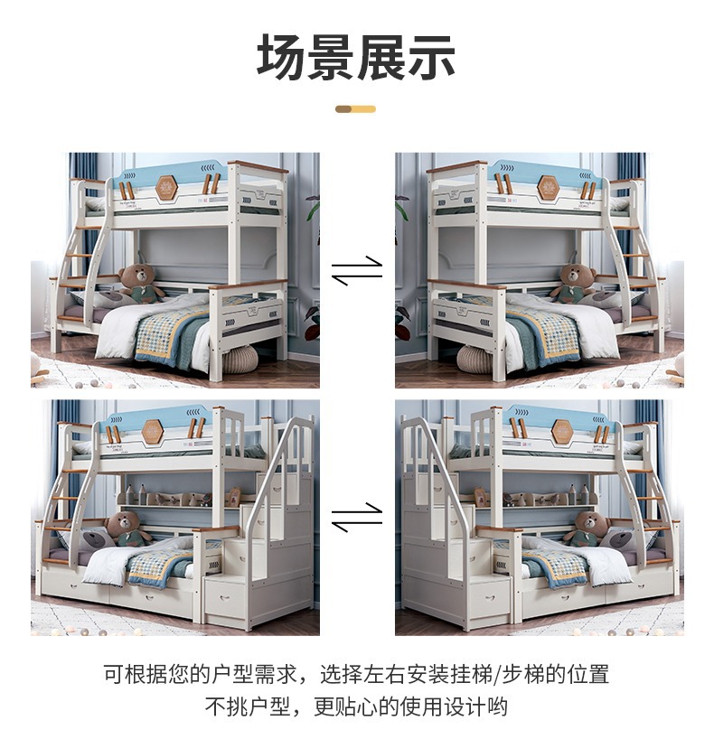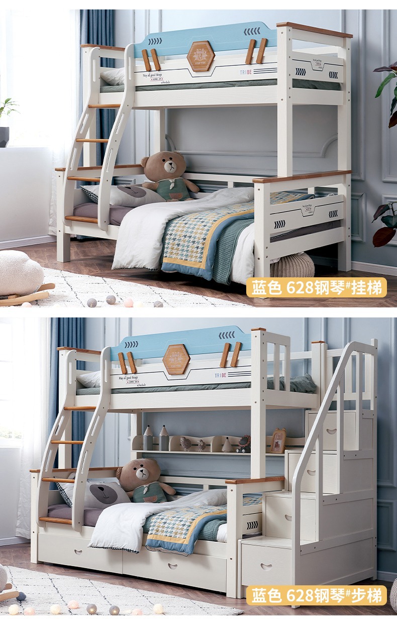 2 층 단단한 나무 침대 어린이 침대 더블 레이어 이층 침대 다기능 작은 아파트 높고 낮은 침대 색상