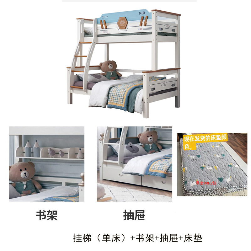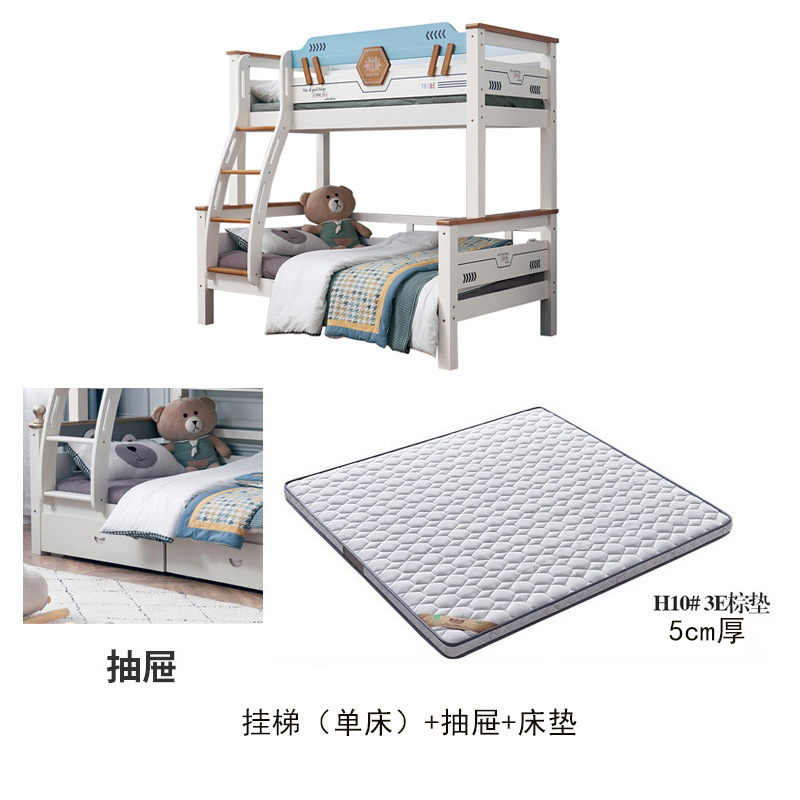 • 매달린 사다리 싱글 침대 + 서랍 + 브랜드 매트리스 5cmX2