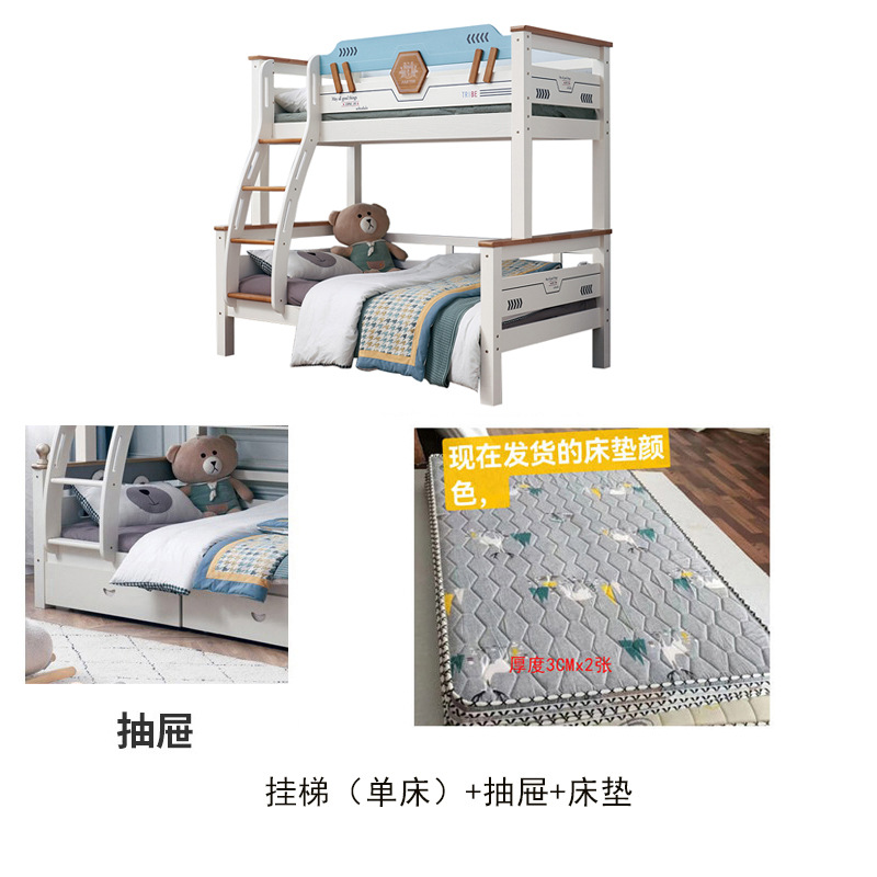 • 매달린 사다리 싱글 침대 + 서랍 + 매트리스 3cmX2