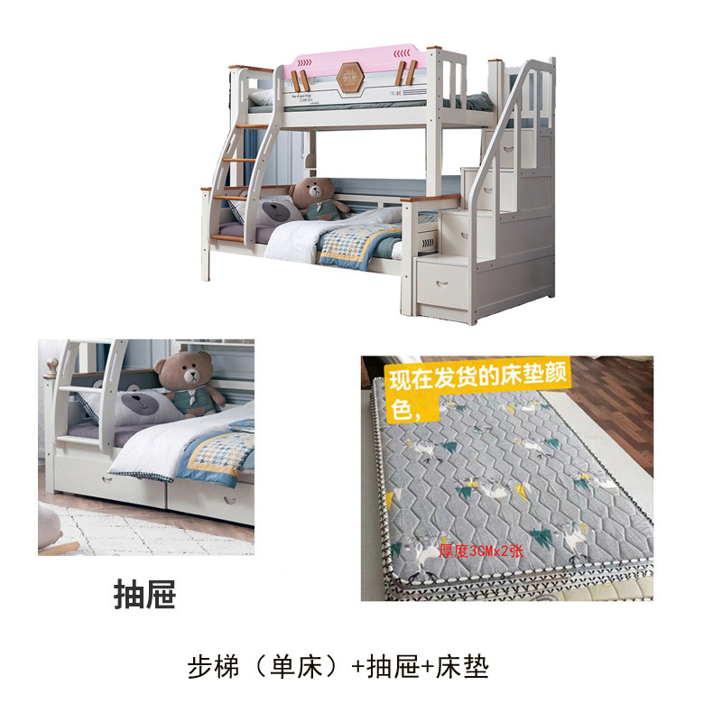 • 스텝 사다리 싱글 침대 + 서랍 + 매트리스 3cmX2