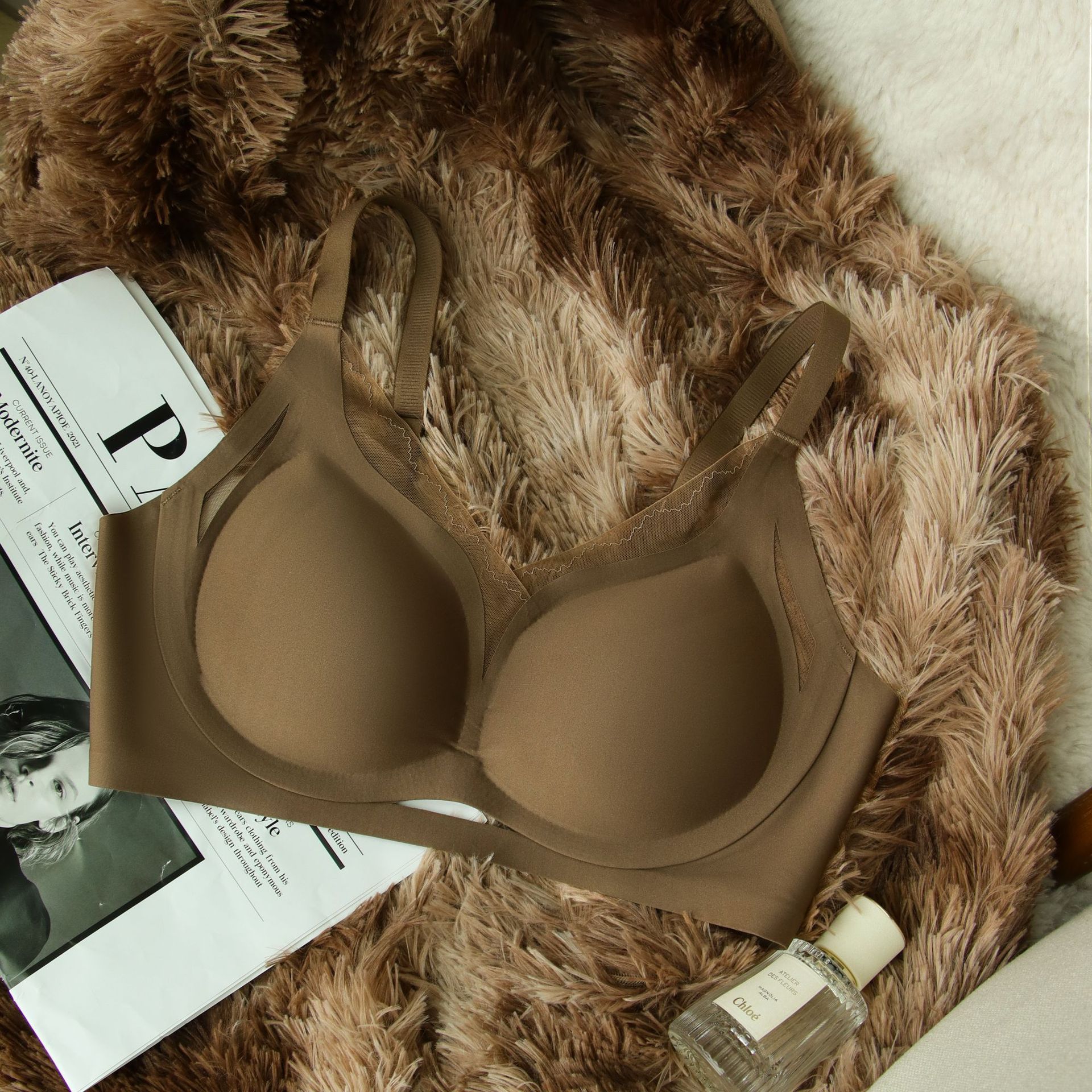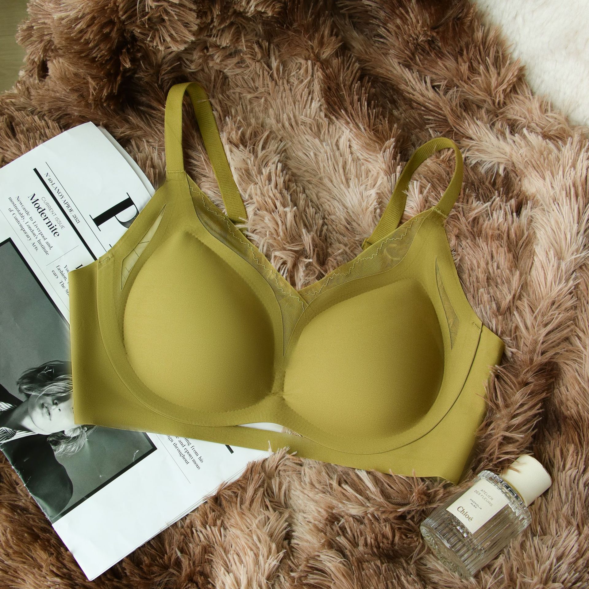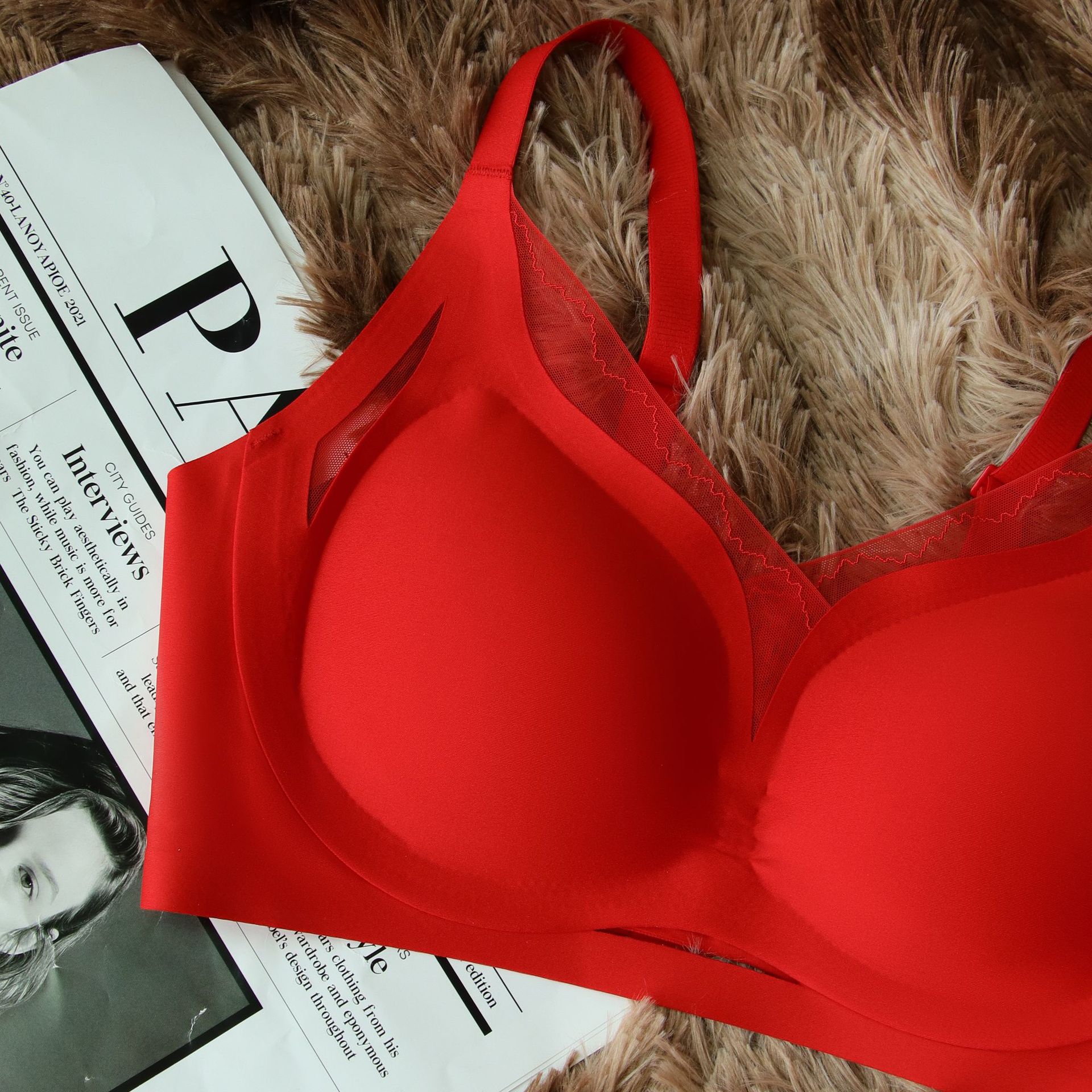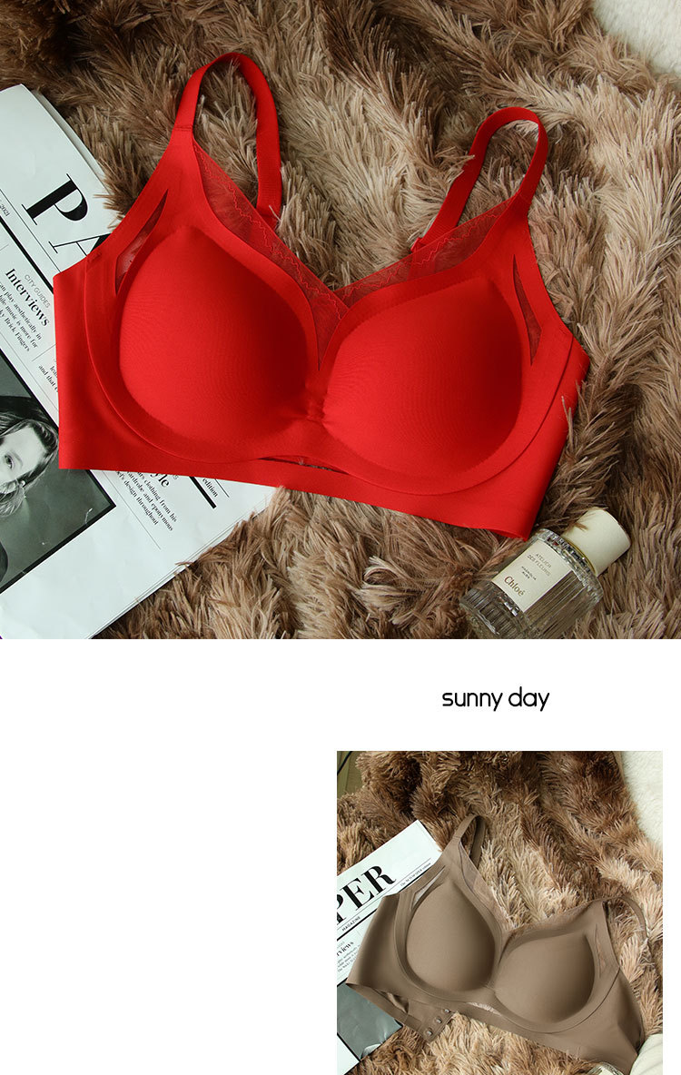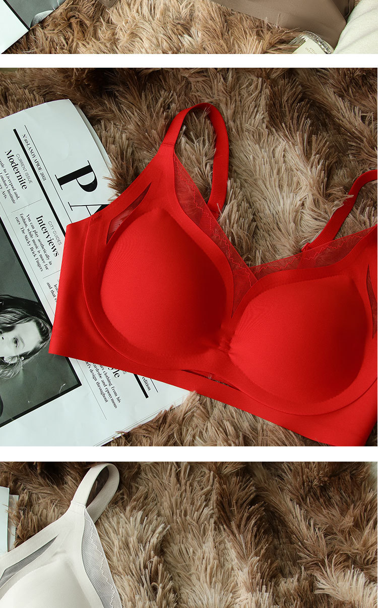 빨간 속옷 이음새가 없는 큰 가슴 작고 얇은 작은 가슴 개더링 액세서리 유방 처짐 방지 스틸 링 비 감각 브라