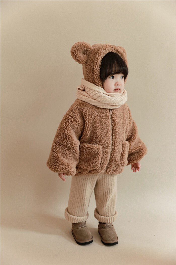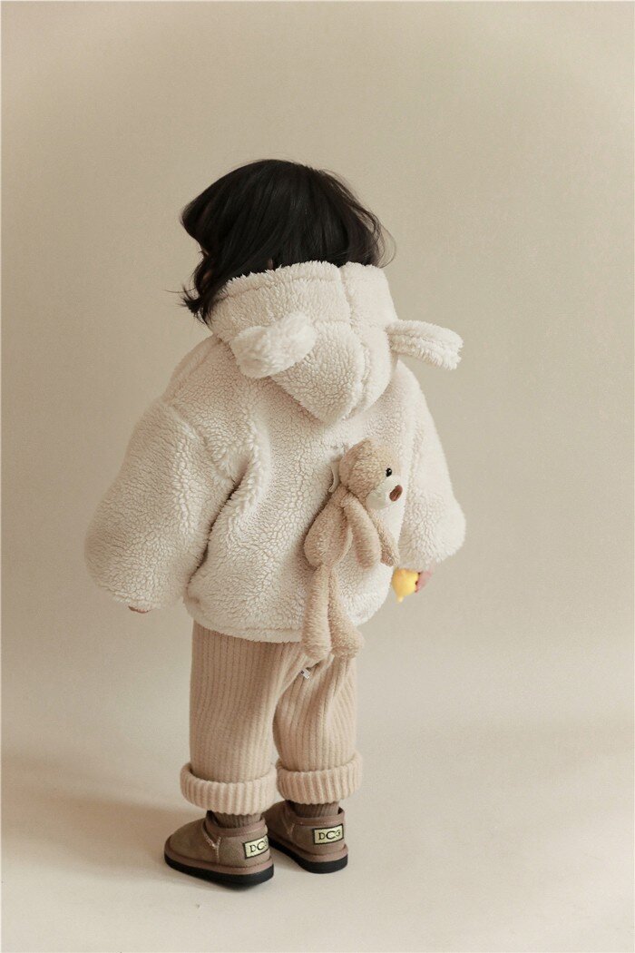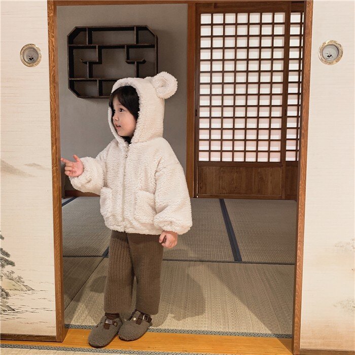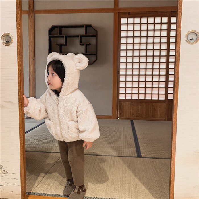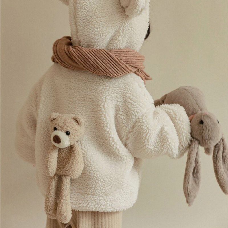 여아 겨울 의류 새로운 어린이 양고기 벨벳 두꺼운 재킷 어린이 서양 스타일 따뜻한 후드 플러시 탑