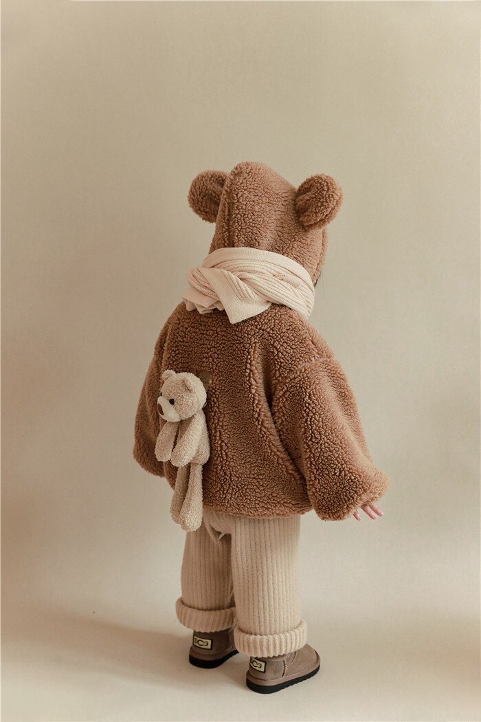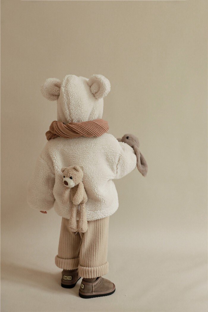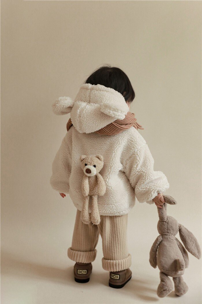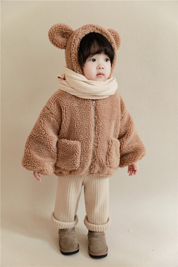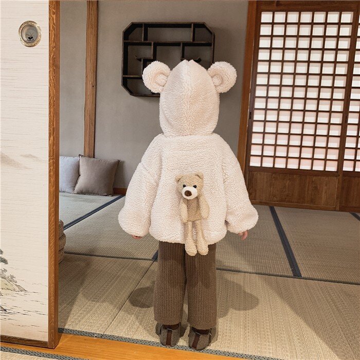 여아 겨울 의류 새로운 어린이 양고기 벨벳 두꺼운 재킷 어린이 서양 스타일 따뜻한 후드 플러시 탑