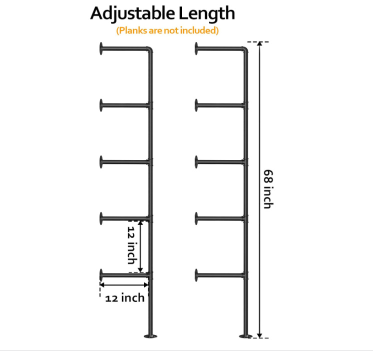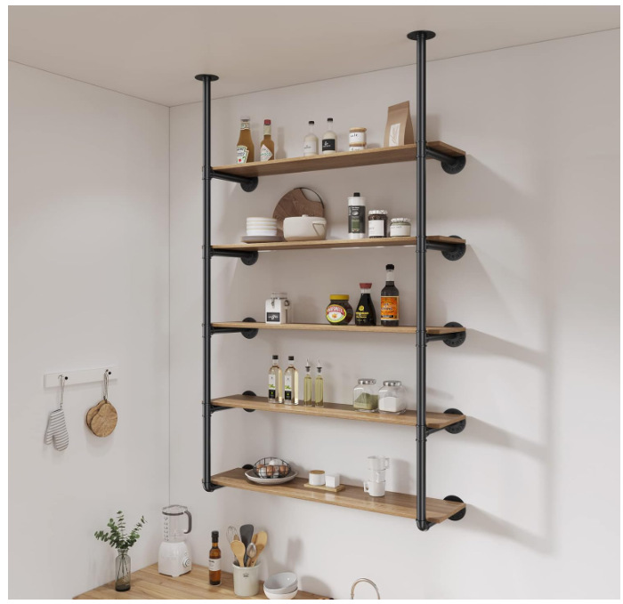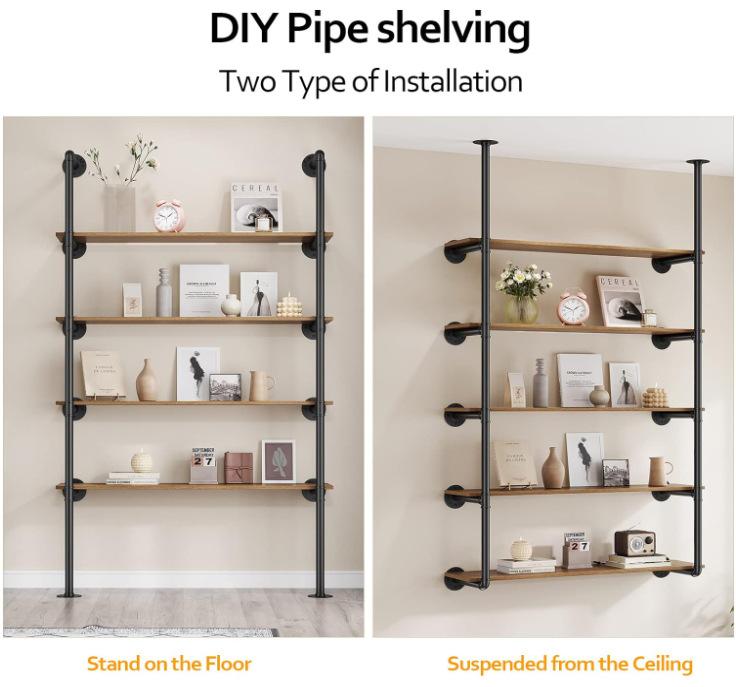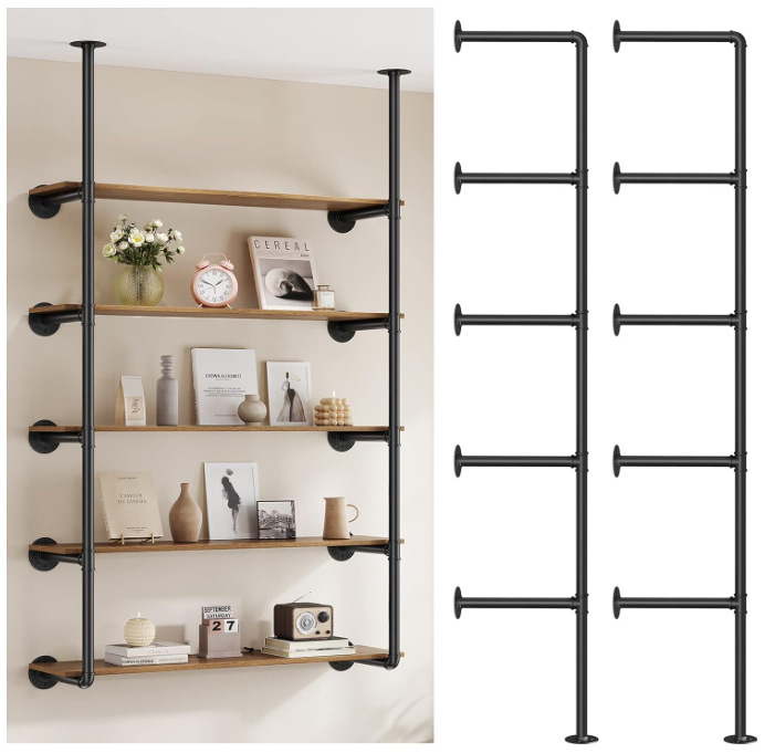 산업용 철제 파이프 랙 벽걸이 형 주방 욕실 파이프 랙 책장 거실 보관 검은 금속 파이프 브래킷