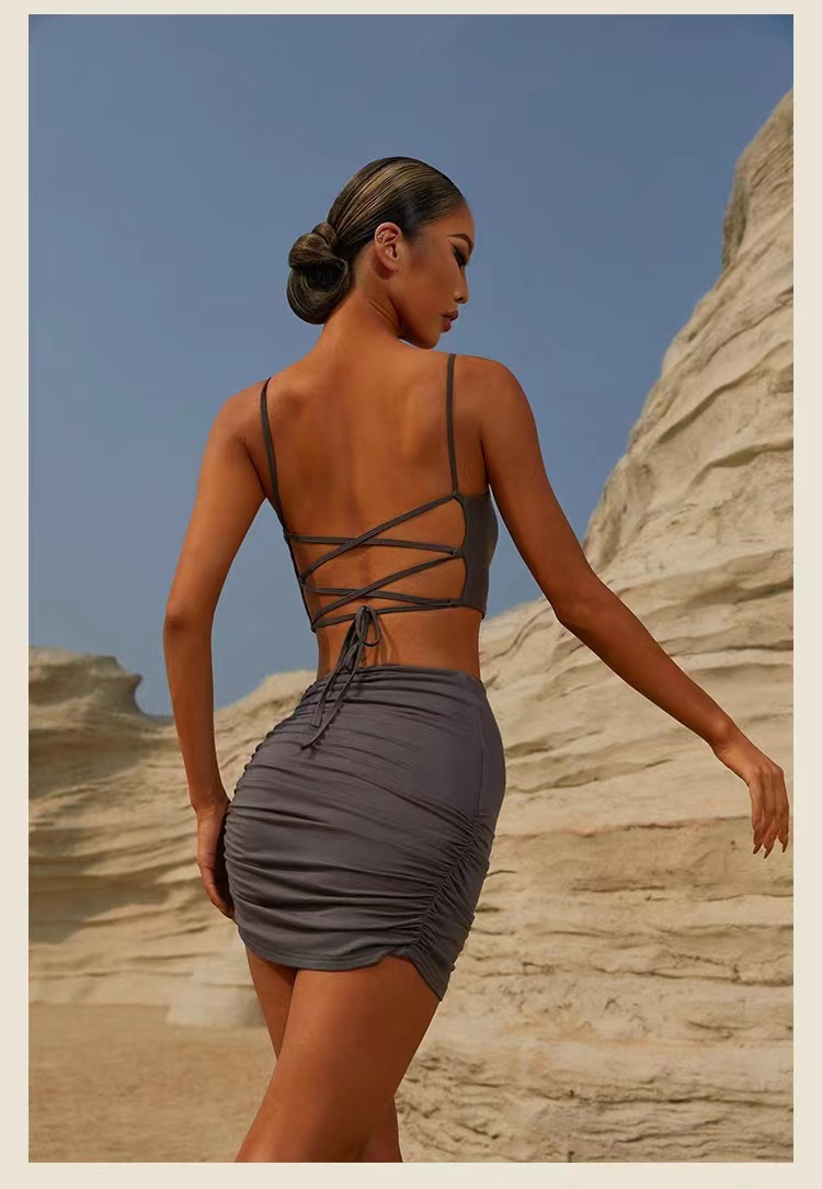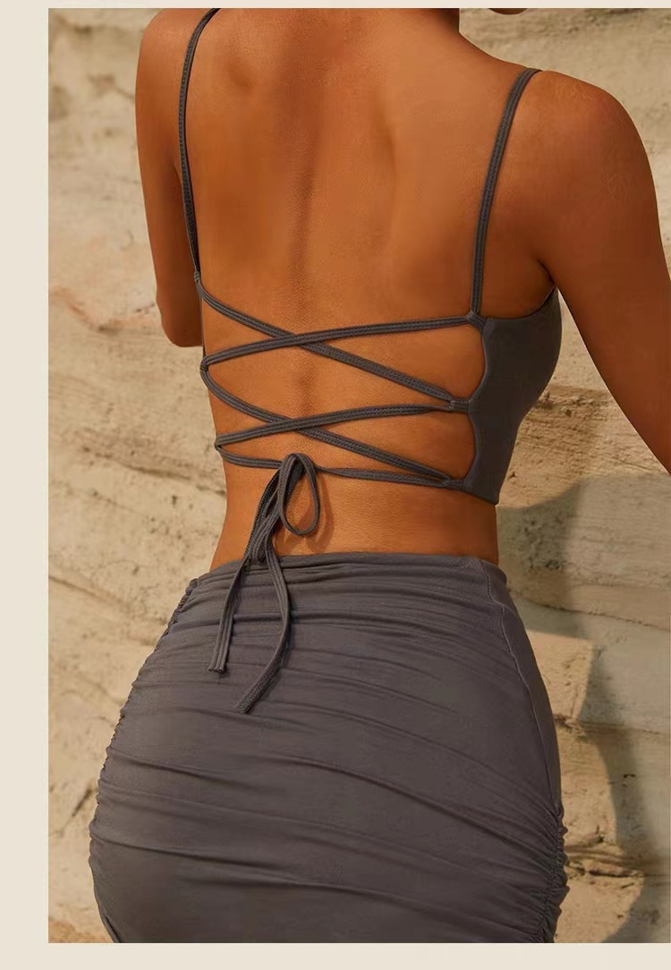 새로운 요가 의류 스포츠 원피스 여성의 아름다운 백 스트랩 충격 방지 섹시 러닝 댄스 피트니스 요가 바지 원피스 여성을위한