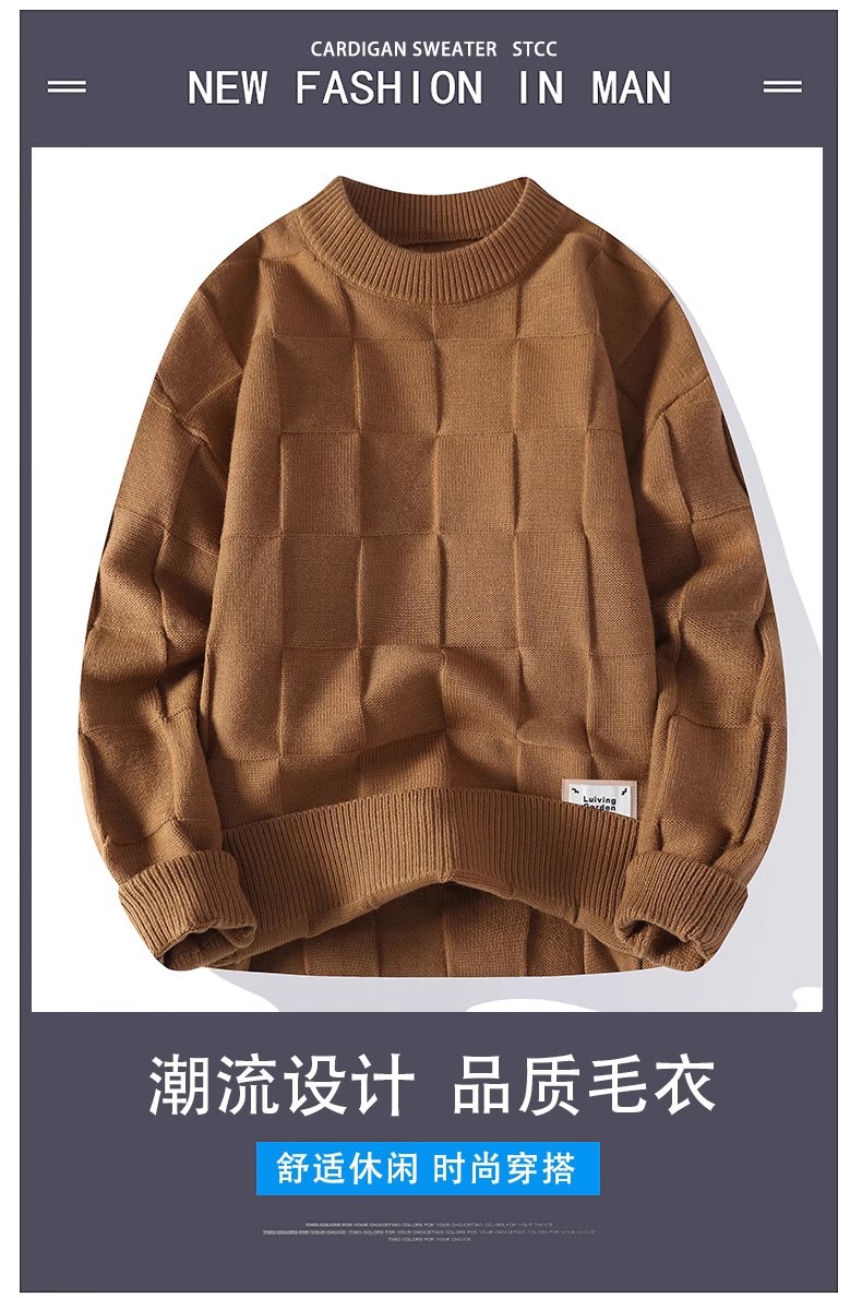 크로스 보더 새로운 스웨터 남자의 가을 라운드 넥 터틀넥 니트 스퀘어 남자의 단색 긴 소매 유행 캐주얼 스웨터