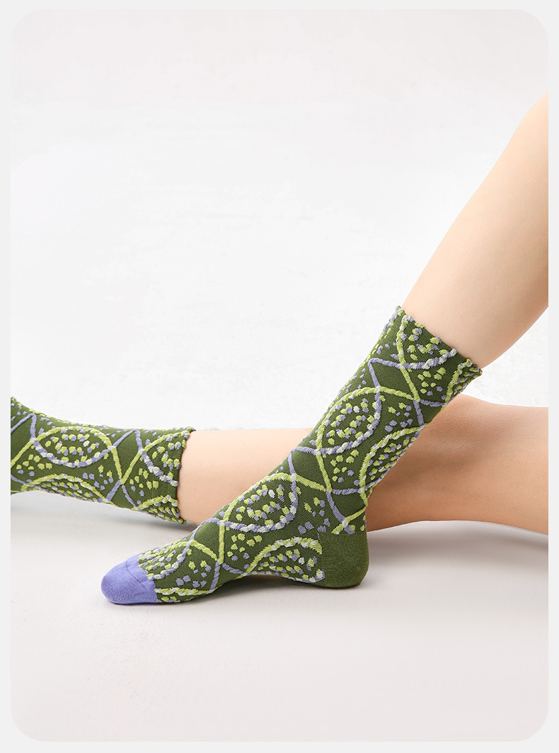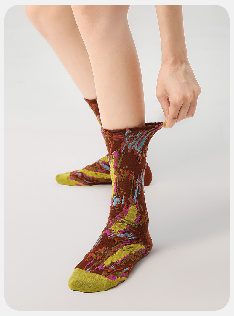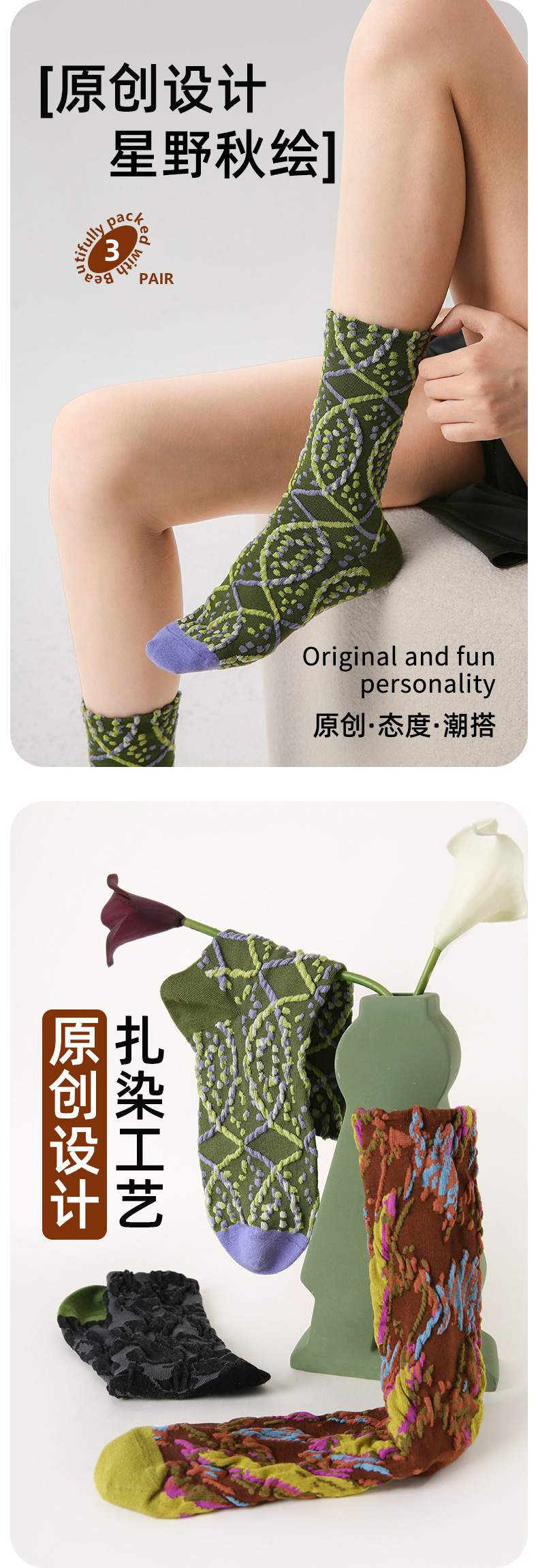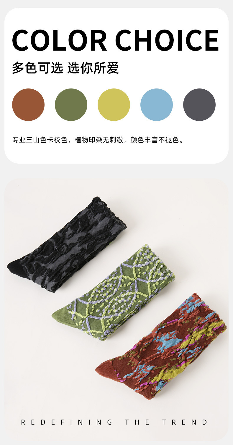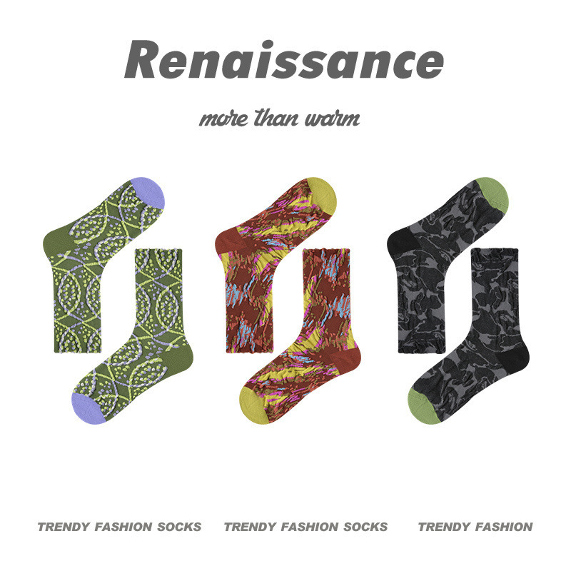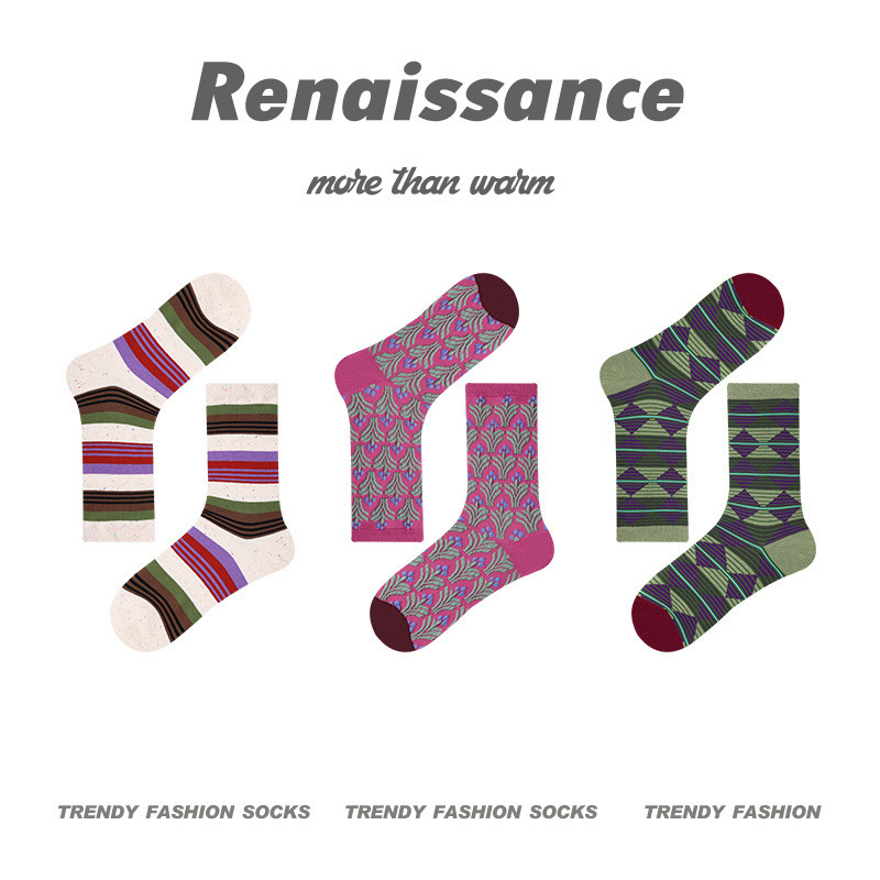 3 쌍-르네상스 가을 패션 브랜드 여성 양말 독창적 인 디자인 복고풍 중간 양말 양각 스타일 빗질면 양말 여성