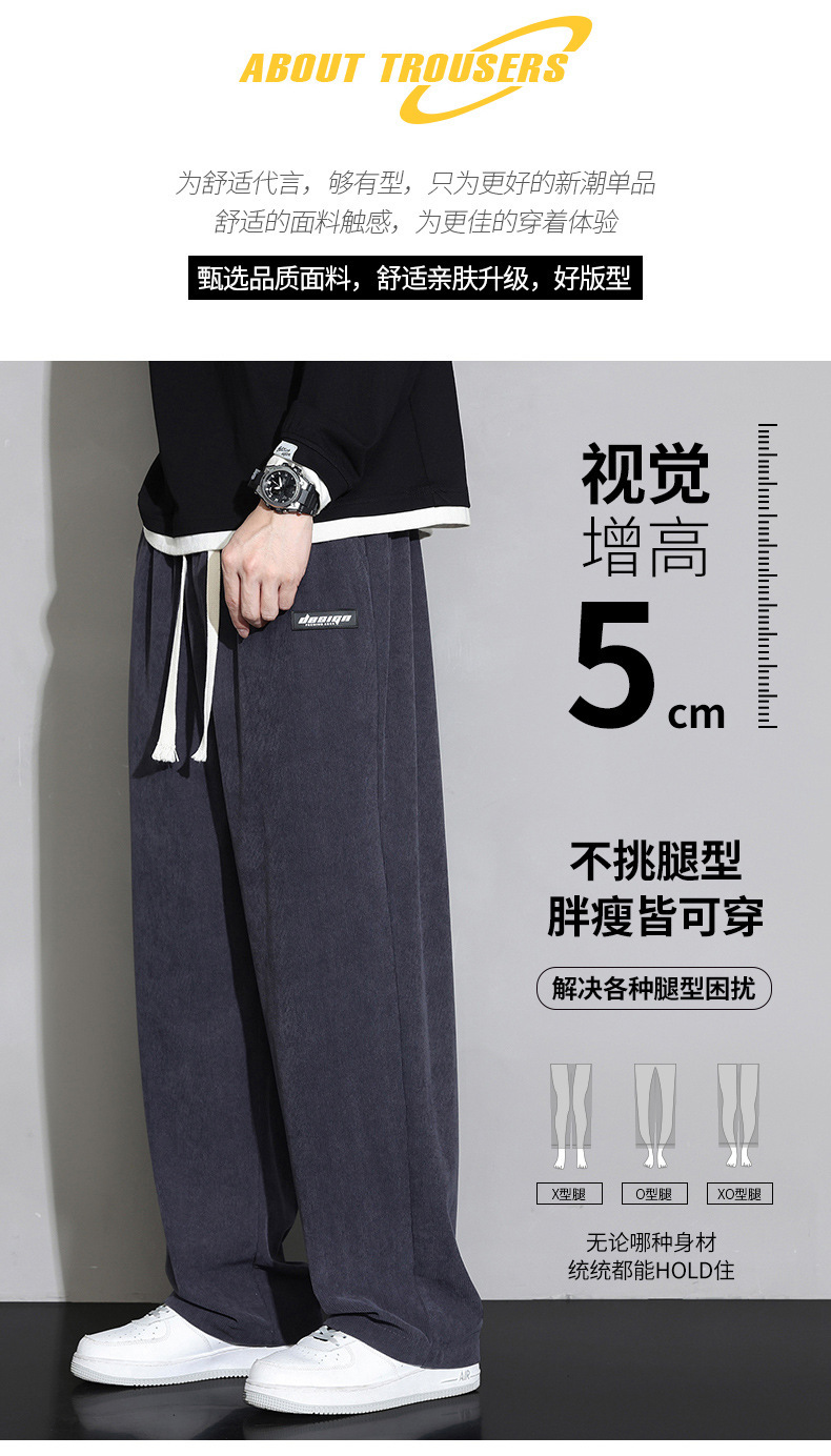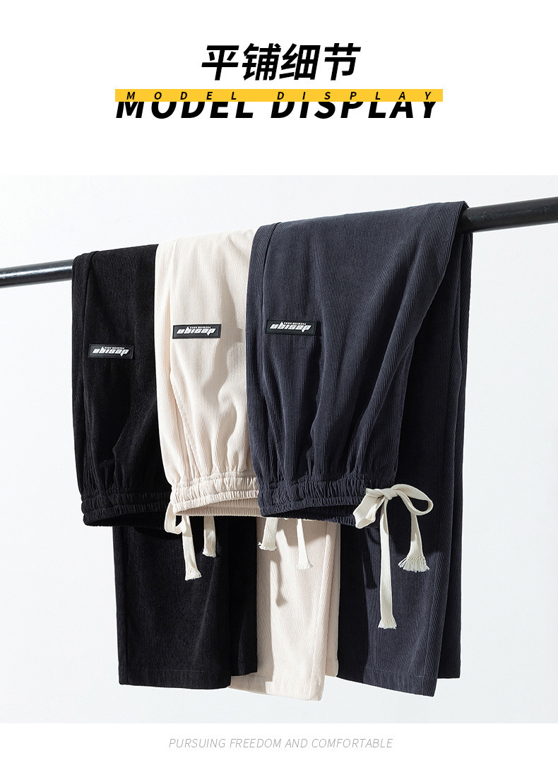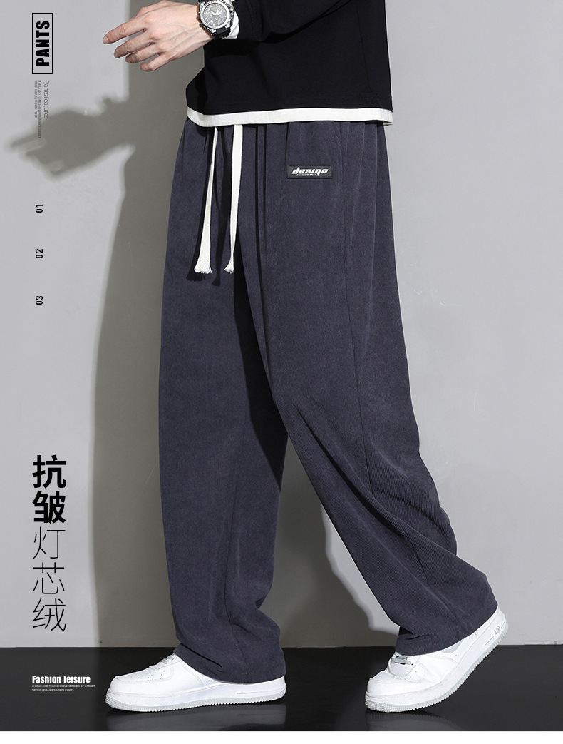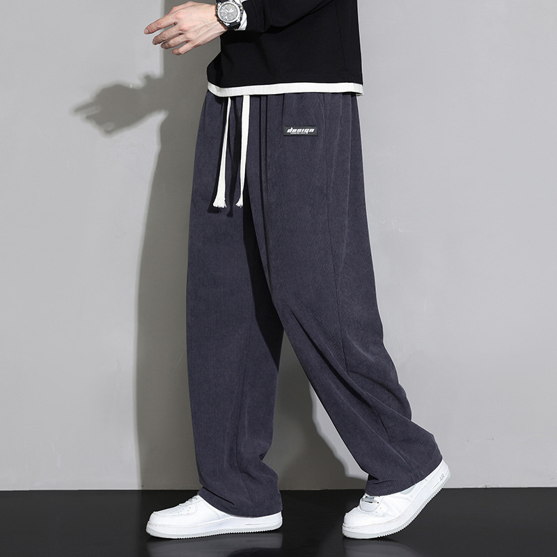 코듀로이 스웨트 팬츠 남성용 봄과 가을 2023 새로운 루즈한 스트레이트 스포츠 팬츠 올매치 와이드 레그 캐주얼 팬츠