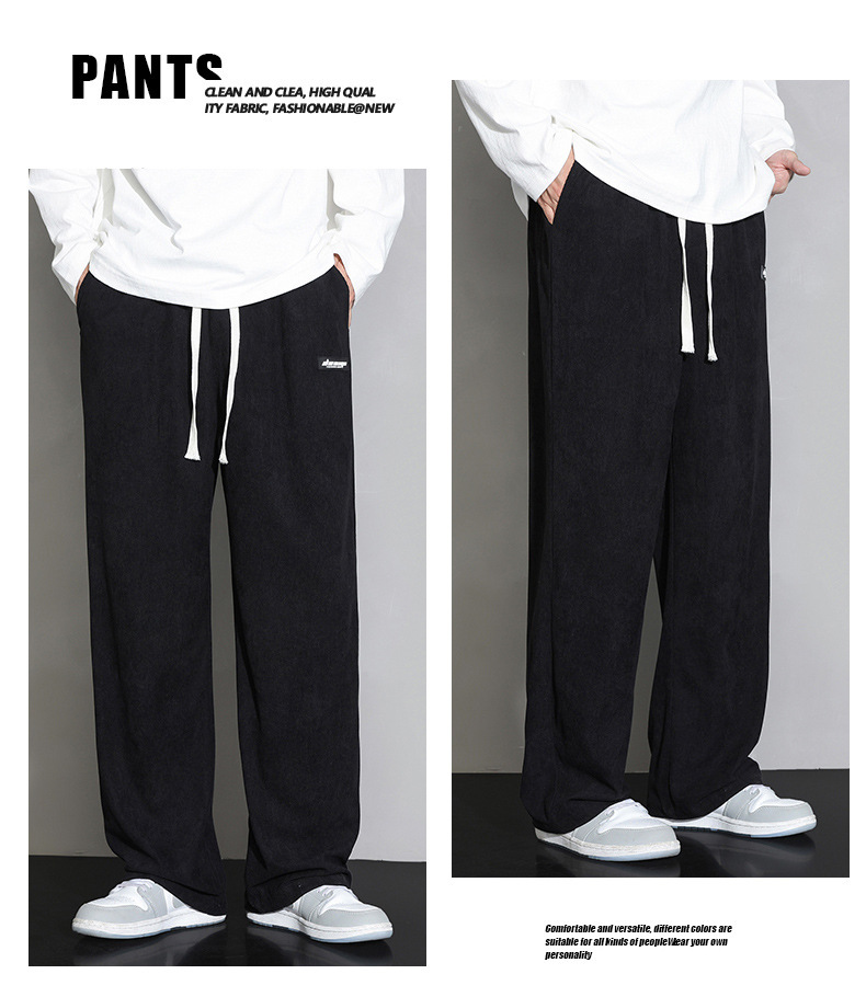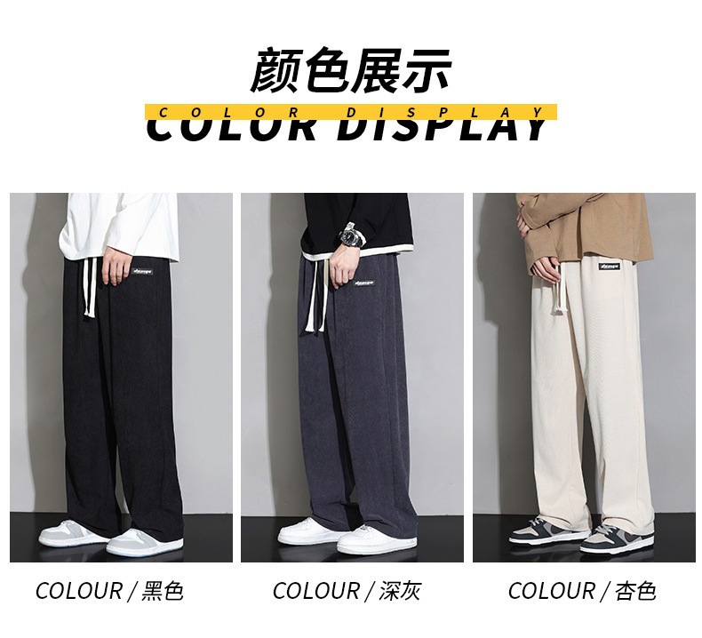 코듀로이 스웨트 팬츠 남성용 봄과 가을 2023 새로운 루즈한 스트레이트 스포츠 팬츠 올매치 와이드 레그 캐주얼 팬츠스토어 가기