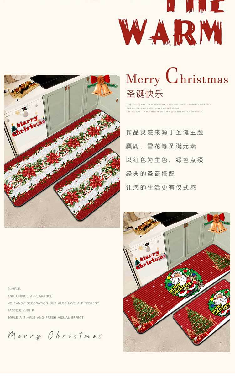 재고 크리스마스 주방 매트 먼지 방지 미끄럼 방지 흡수성 산타 클로스 휴일 장식 발 매트 재고 도매 Daifa스토어 가기