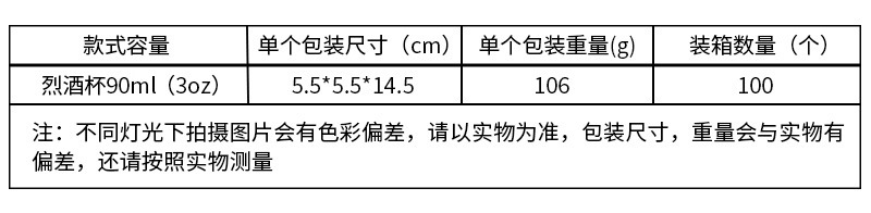 重量:直身烈酒杯82g 吸管6g 直身烈酒杯+吸管+盒102g