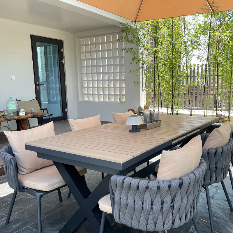 야외 테이블과 의자 안뜰 등나무 야외 발코니 티 테이블 야외 레저 플라스틱 나무 망원경 테이블 알루미늄 합금 식탁