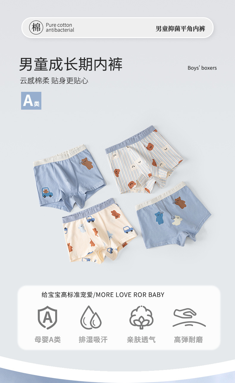 새로운 유형 빗질 코튼 소년 속옷 통기성 코튼 만화 곰 어린이 복서 속옷 아기 복서 반바지스토어 가기