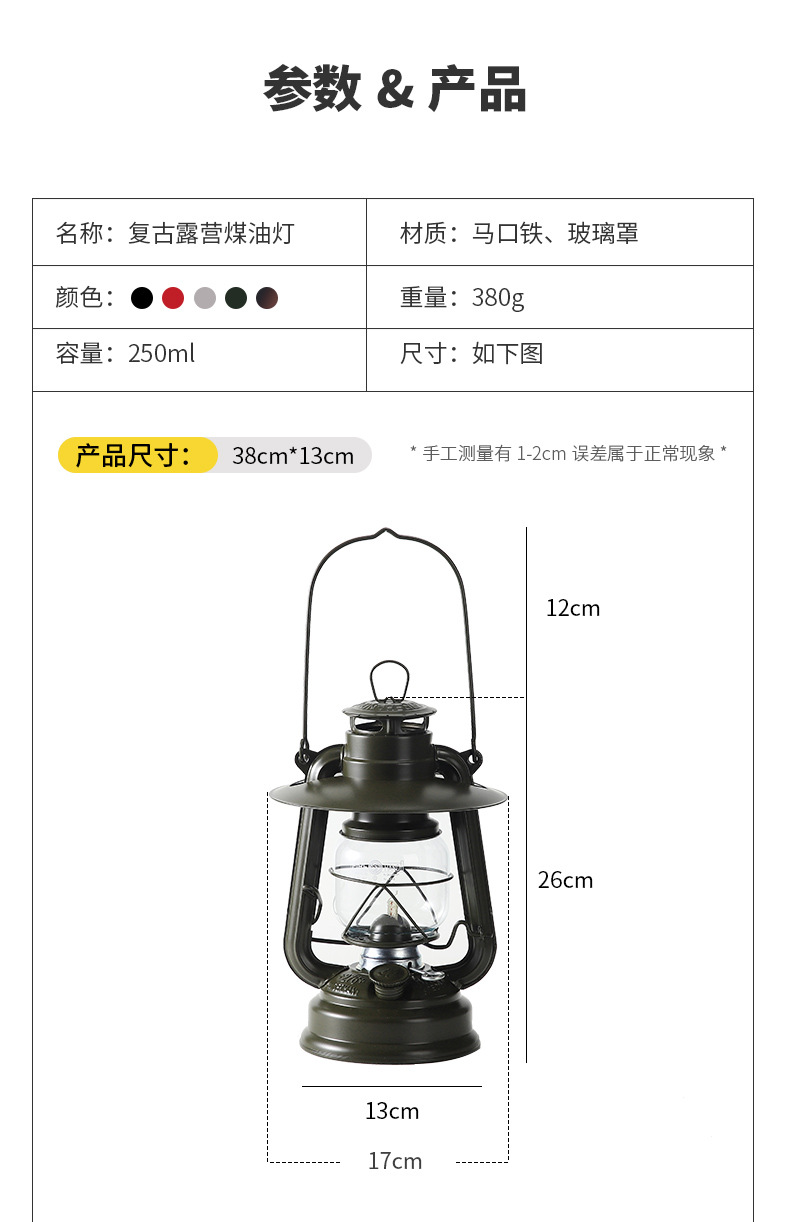 276 선생 말 램프 야외 캠핑 램프 텐트 조명 빈티지 등유 램프 분위기 휴대용 캠핑 램프