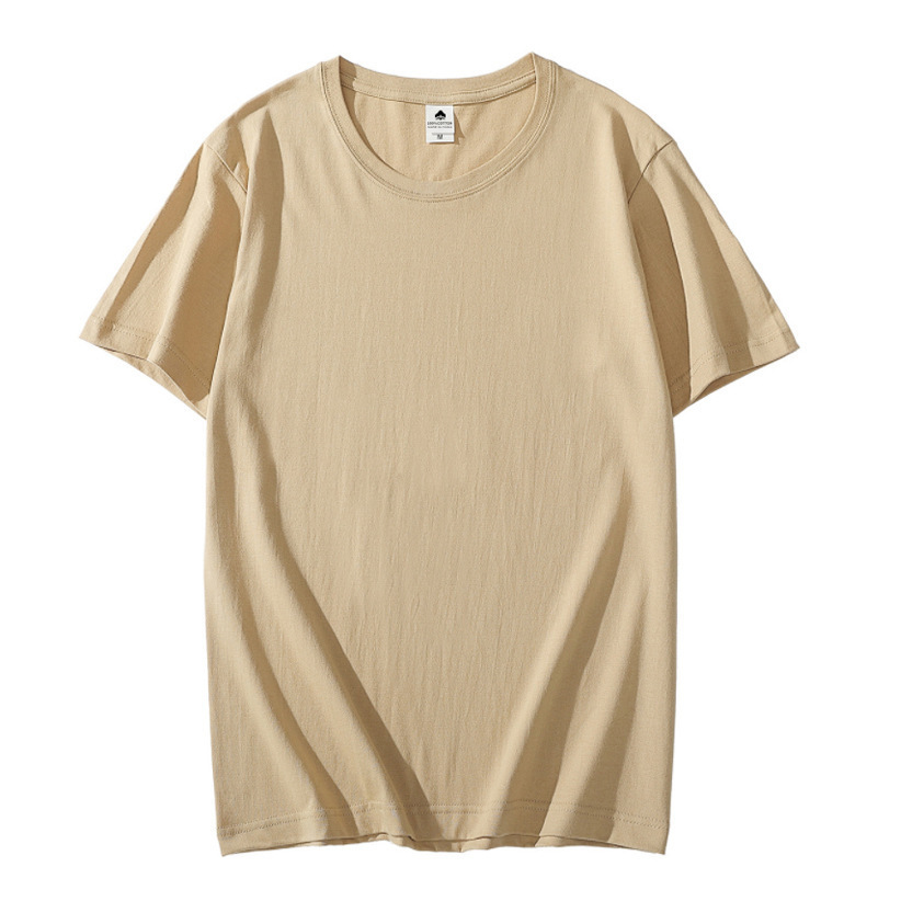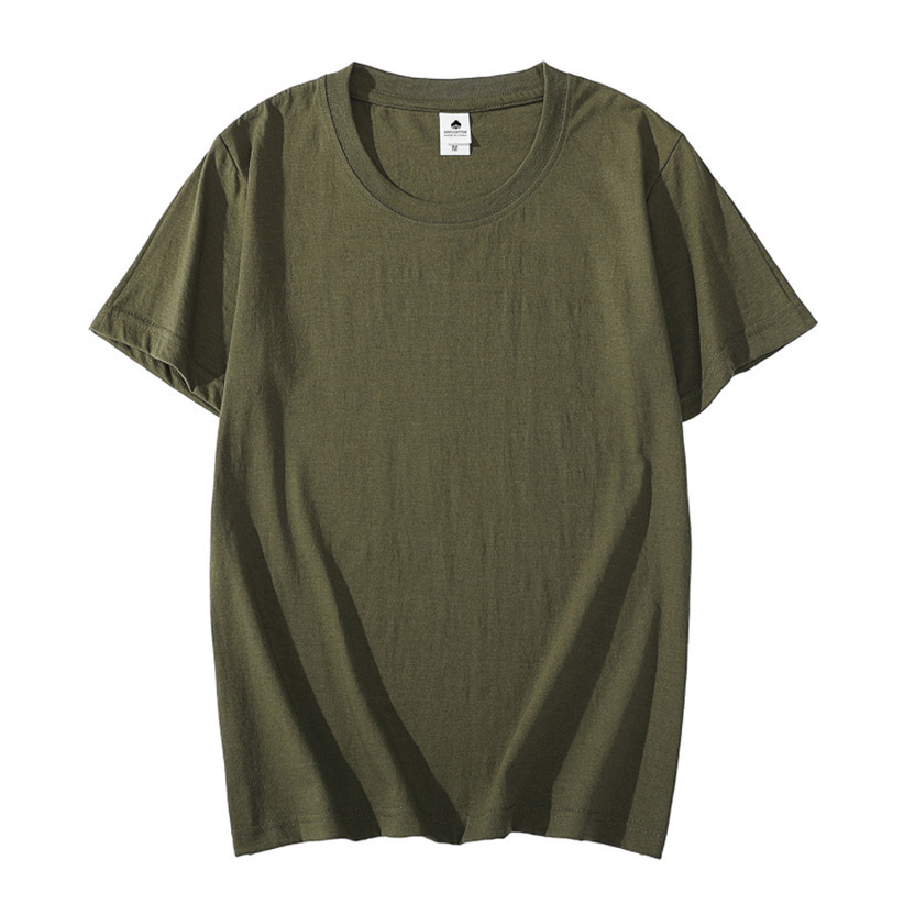 2022 새로운 180g 카키 반팔 빗질 코튼 다크 그린 티셔츠 남성 레트로 라운드 넥 커플 코트
