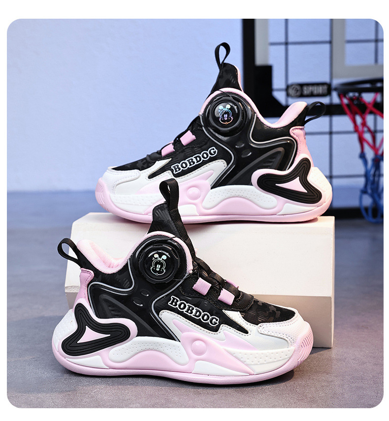 Babu Bean 어린이 농구 신발 단추 소년 신발 봄과 가을 새로운 중간 및 큰 소년 가죽 방수 스포츠 신발