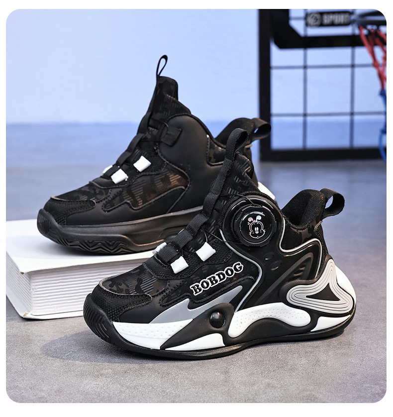 Babu Bean 어린이 농구 신발 단추 소년 신발 봄과 가을 새로운 중간 및 큰 소년 가죽 방수 스포츠 신발스토어 가기