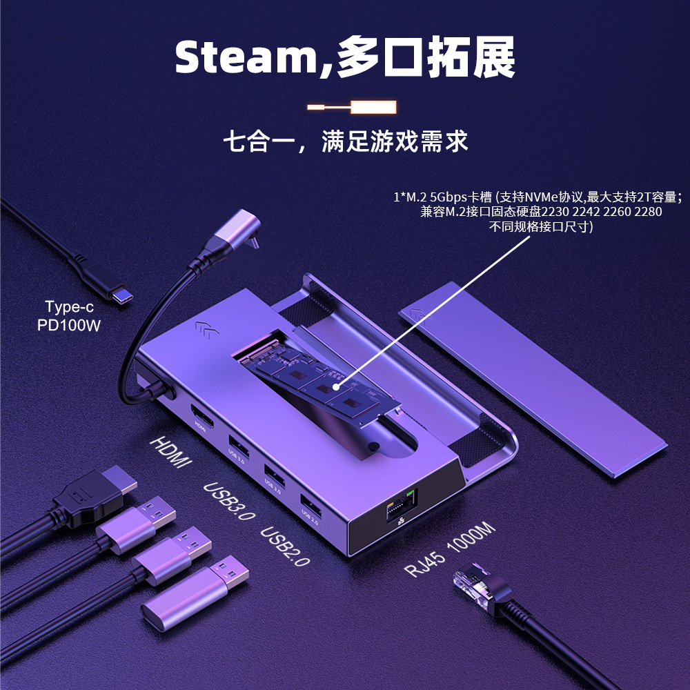 ASUS ROG ALLY 휴대용 스팀 데크 알루미늄 합금 베이스에 적합한 기존 7-in-1 도킹 스테이션 HDMI