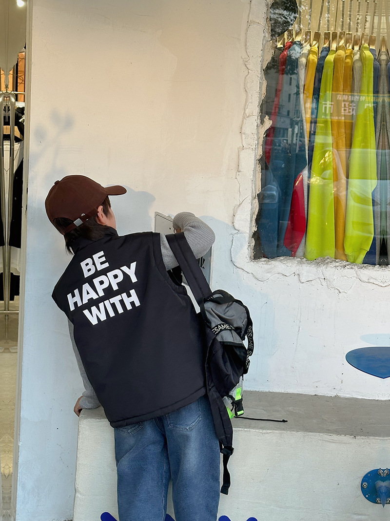 남자 아동복 가을과 겨울 겉옷 어린이 백 레터 짠 조끼 어린이 잘 생긴 민소매 자켓 조끼 면 패딩스토어 가기