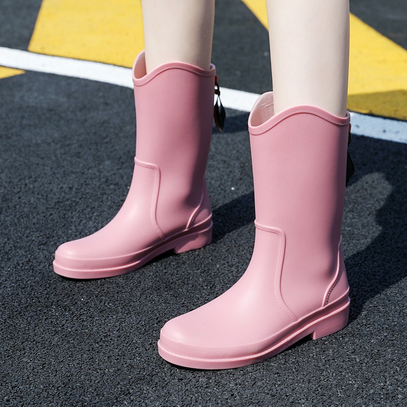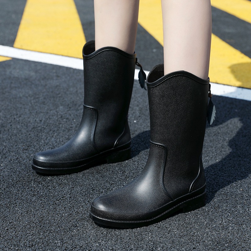 국경을 넘는 새로운 트렌디한 슬림핏 하이탑 여성용 아웃도어 레인부츠, 유럽 및 미국 스타일의 패셔너블한 주방용 미끄럼 방지 방수 레인슈즈