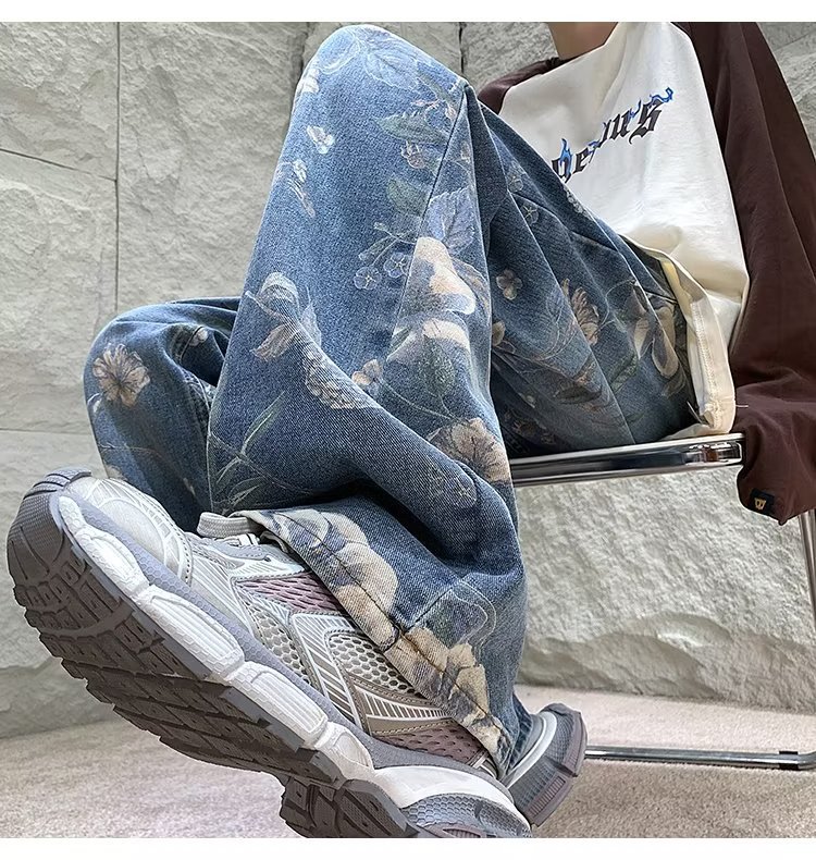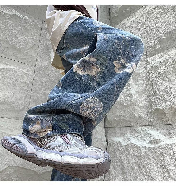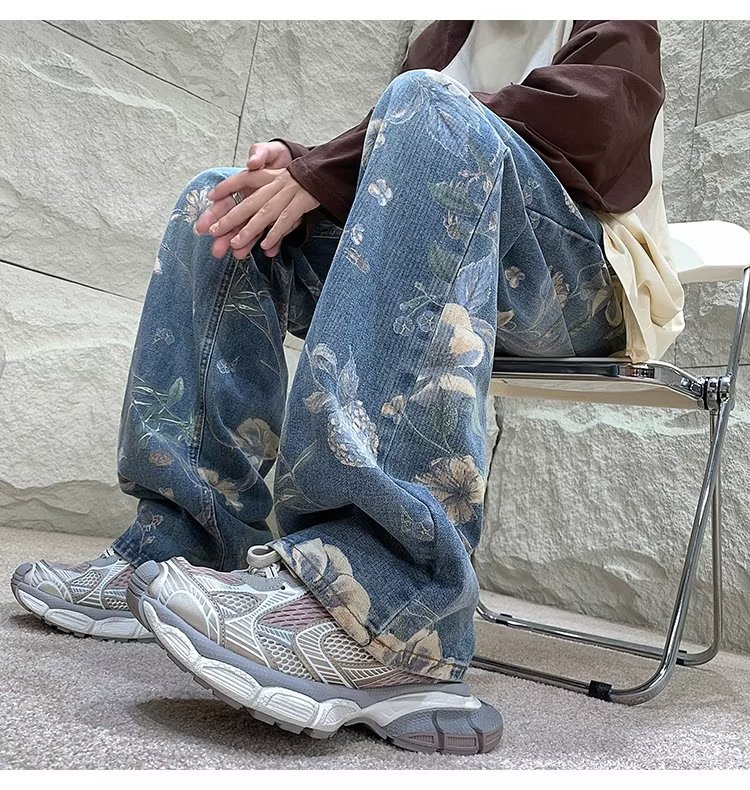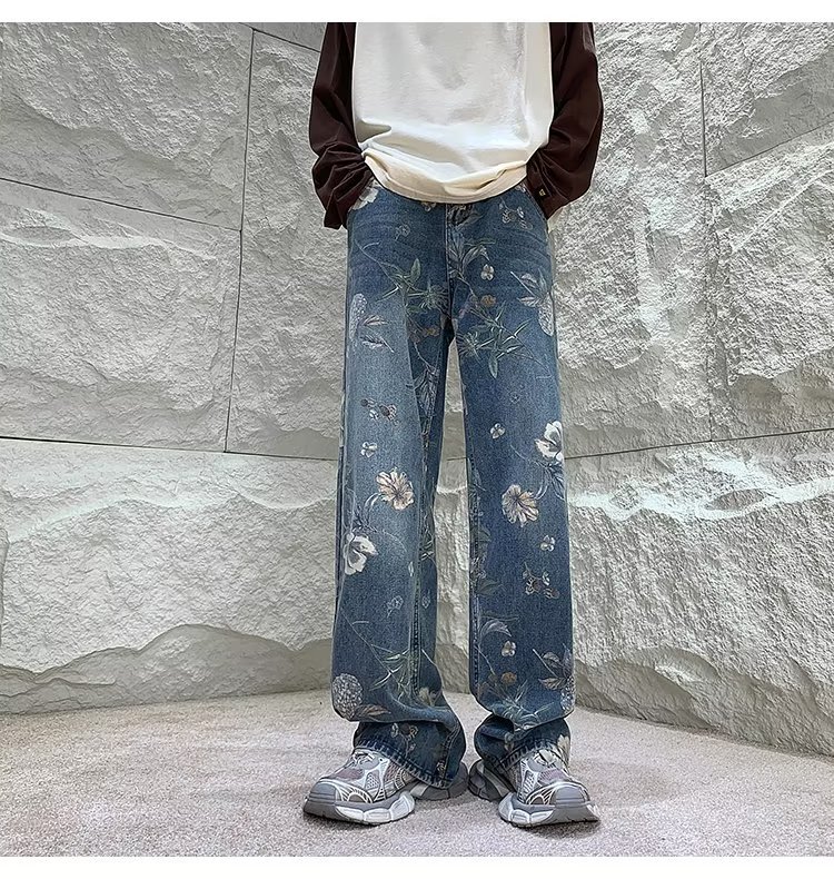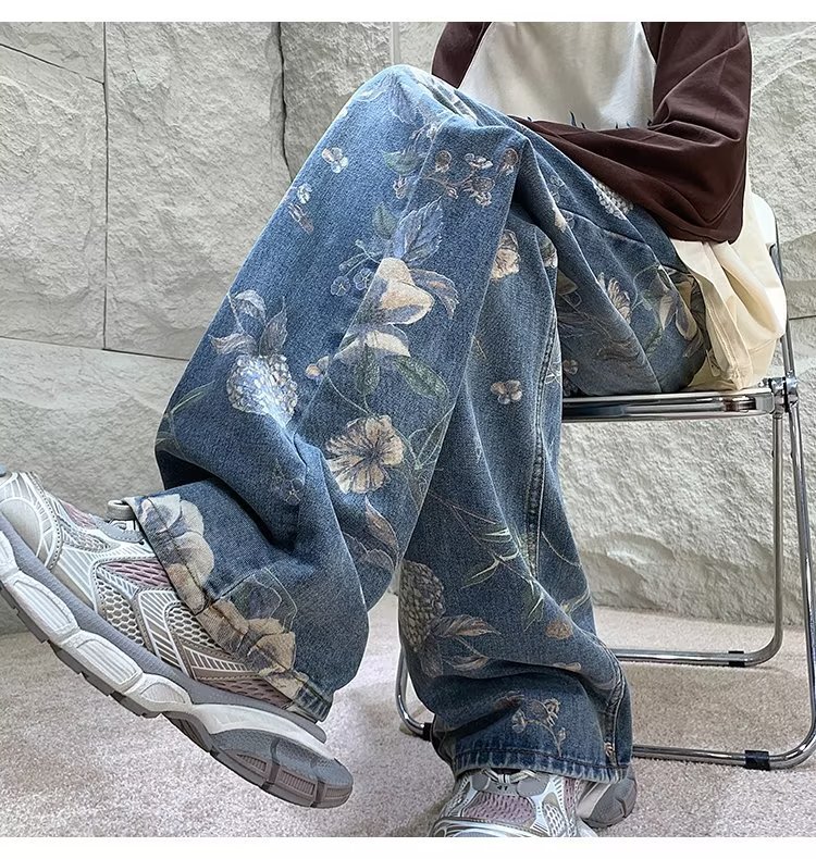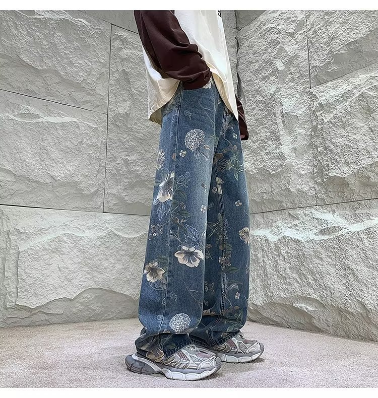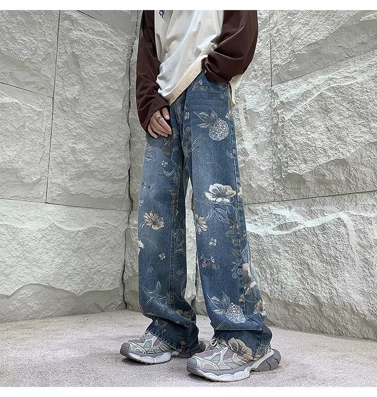 아메리칸 레트로 디스트레스드 청바지 남성 봄, 가을 디자인 틈새 스트레이트 와이드 레그 트렌디 브랜드 스트리트 잘생긴 바지
