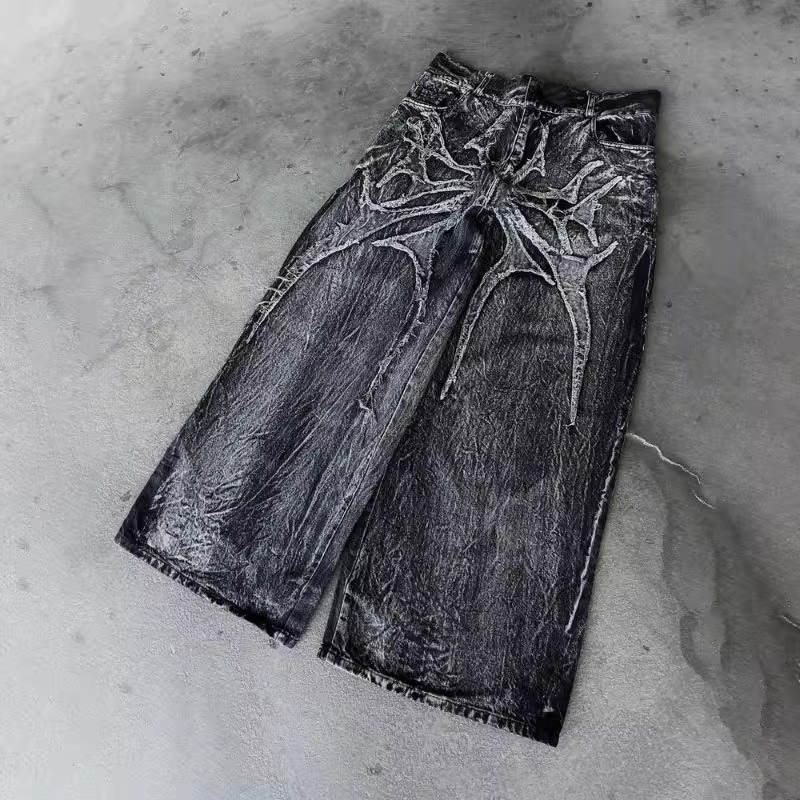 아메리칸 레트로 디스트레스드 청바지 남성 봄, 가을 디자인 틈새 스트레이트 와이드 레그 트렌디 브랜드 스트리트 잘생긴 바지스토어 가기