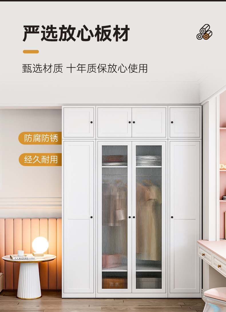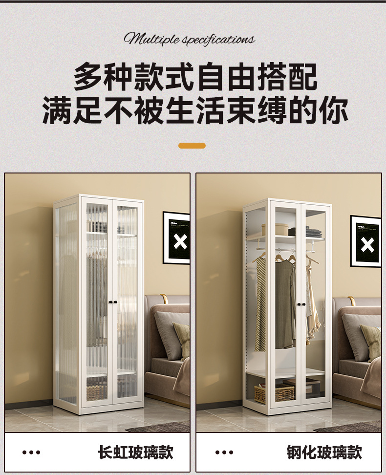철제 옷장 가정용 침실 유리 문 강철 간단한 옷장 경제적 인 금속 발코니 보관 캐비닛