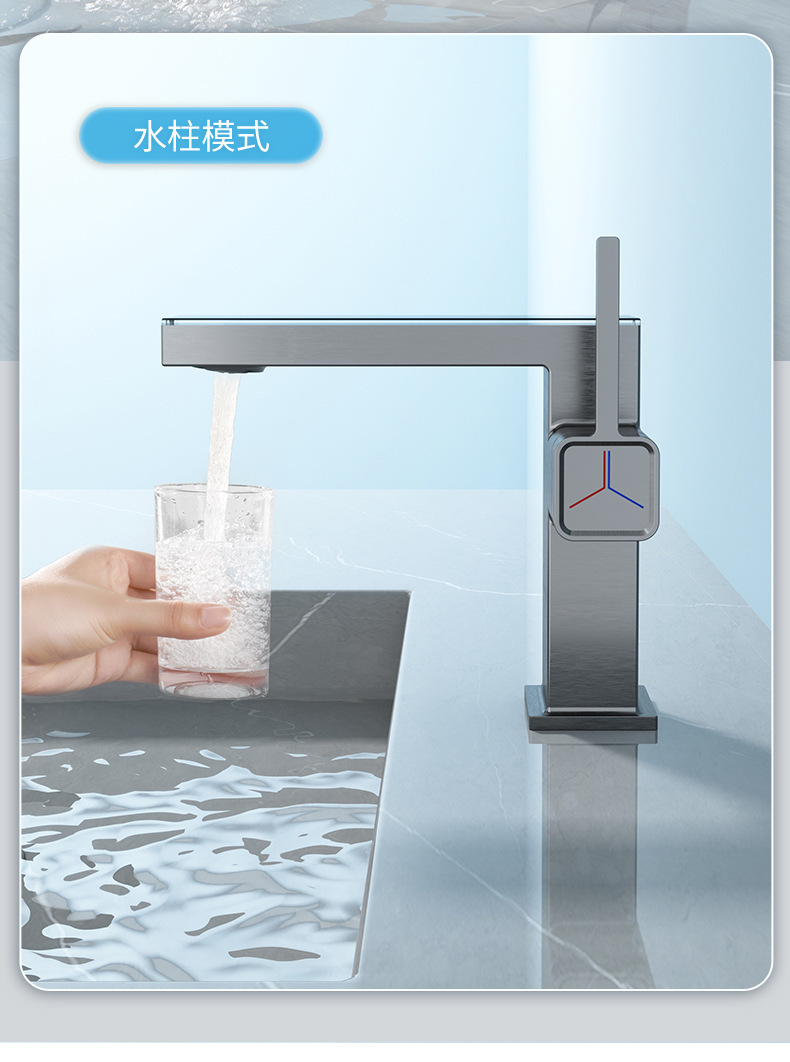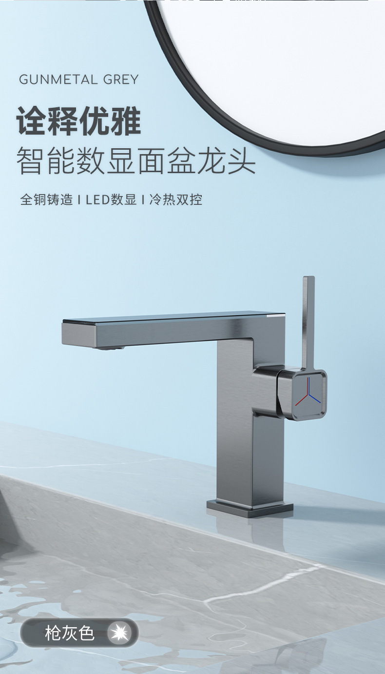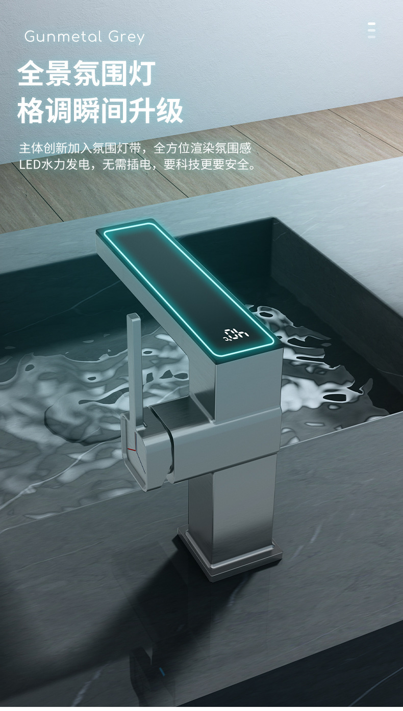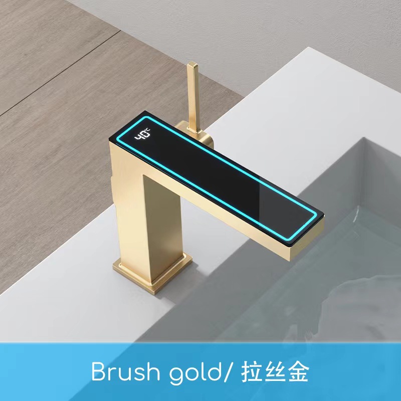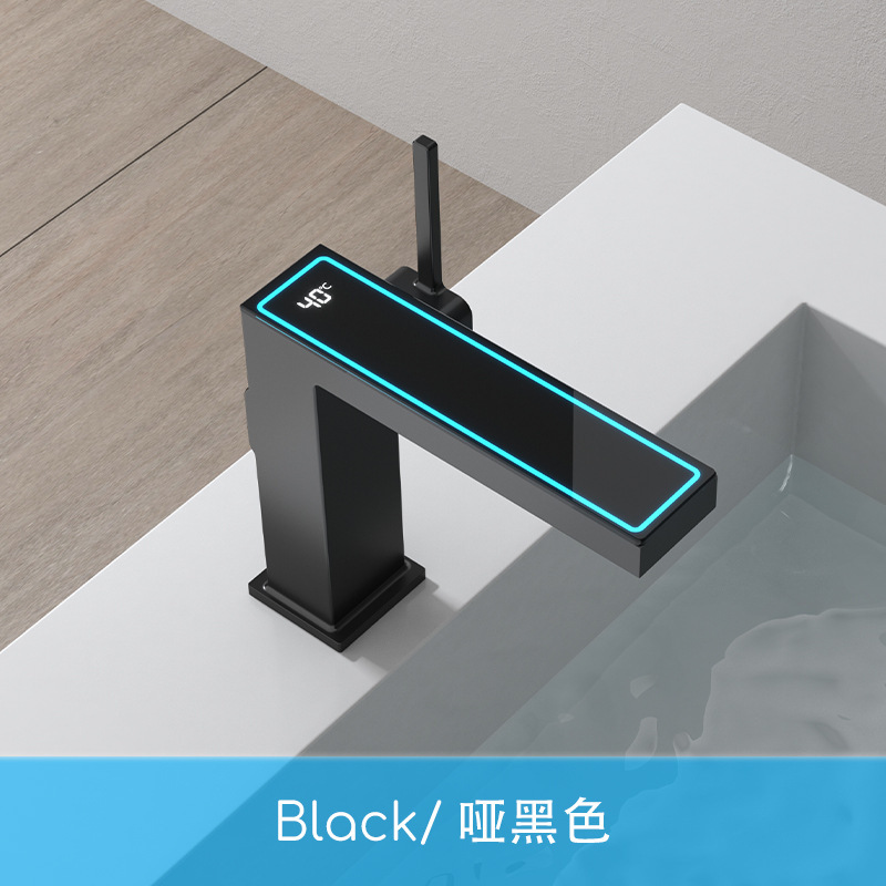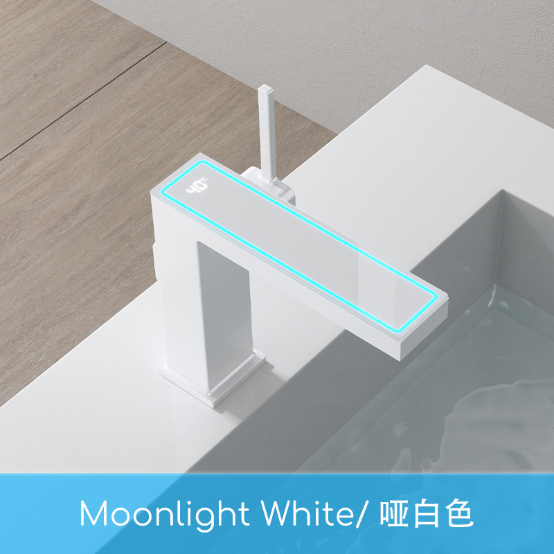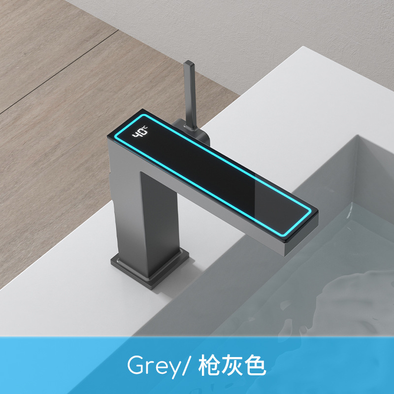 지능형 디지털 디스플레이 분위기 램프 분지 뜨겁고 차가운 총 회색 수도꼭지 욕실 캐비닛 우유 화이트 블랙 골드 수도꼭지스토어 가기
