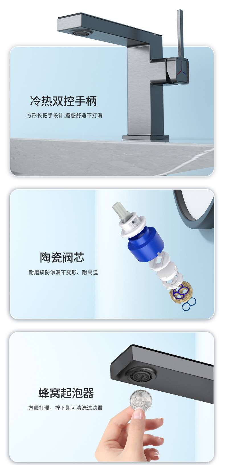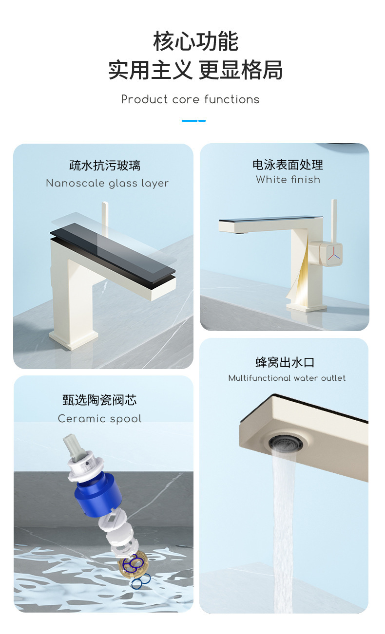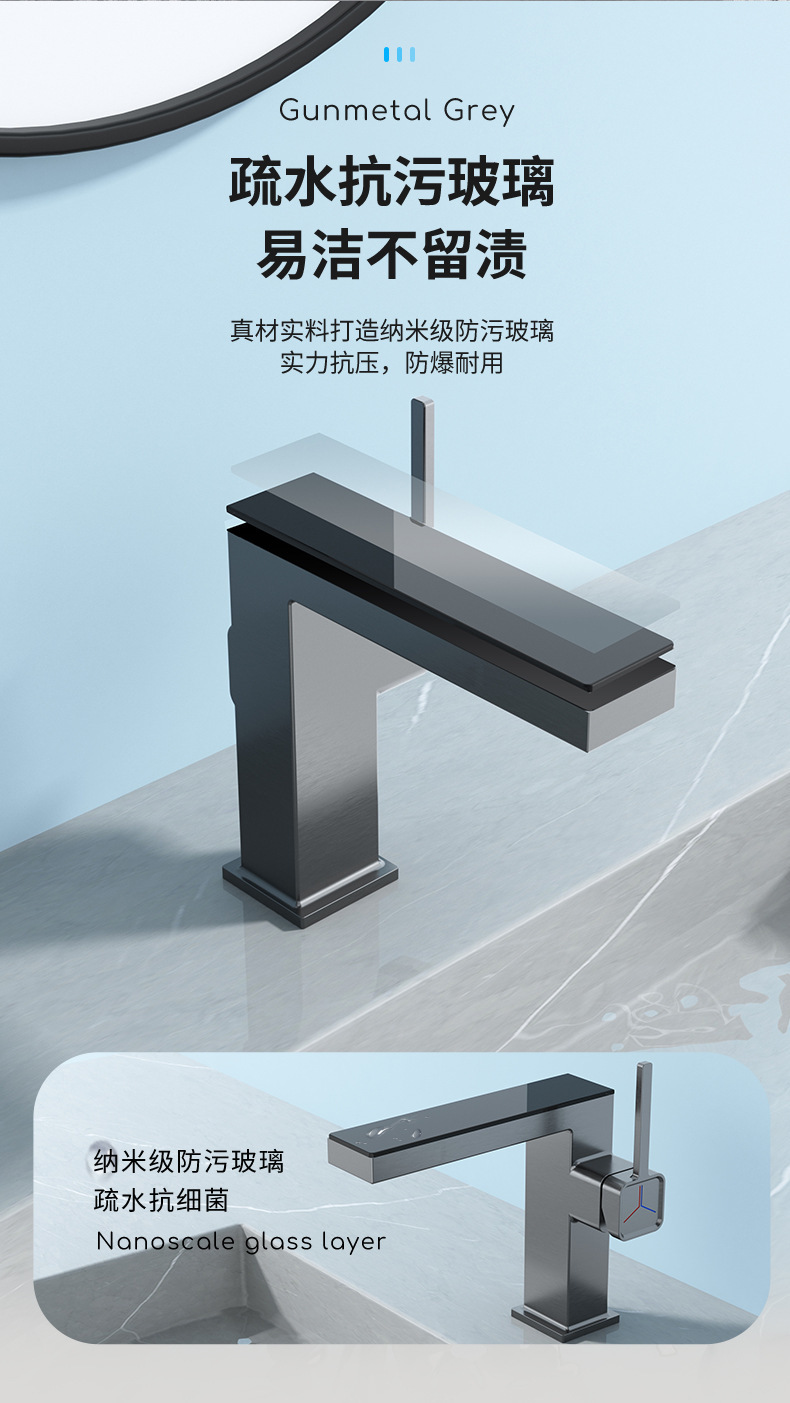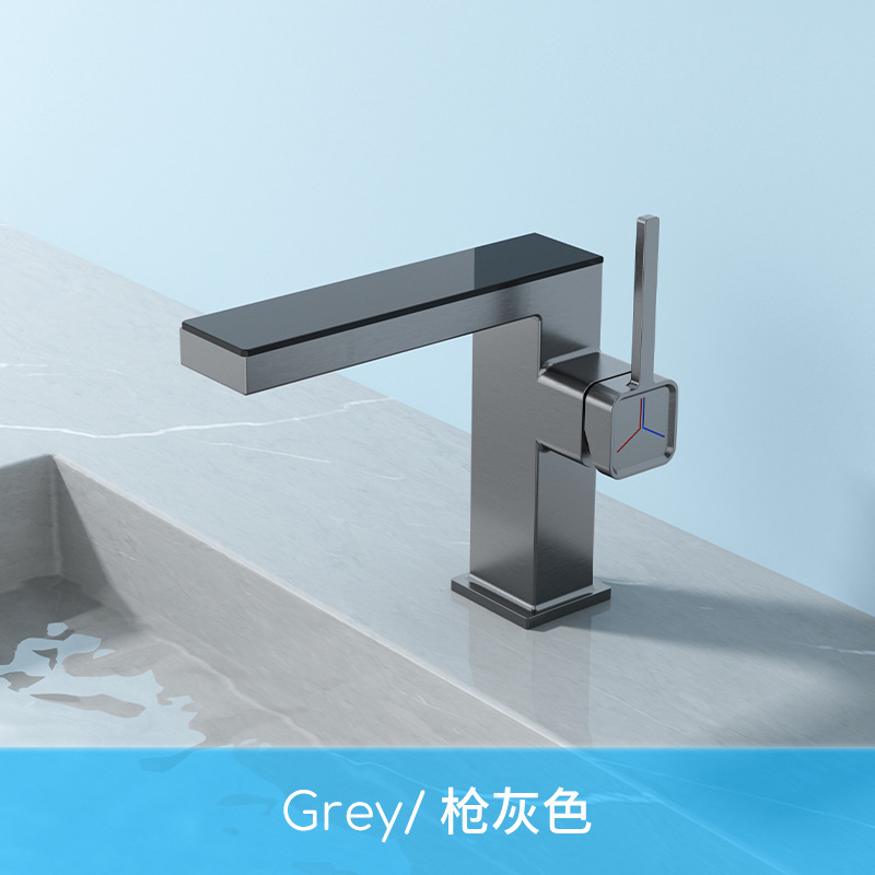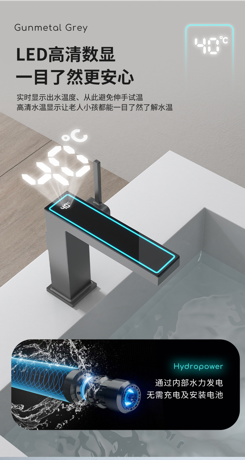 지능형 디지털 디스플레이 분위기 램프 분지 뜨겁고 차가운 총 회색 수도꼭지 욕실 캐비닛 우유 화이트 블랙 골드 수도꼭지스토어 가기