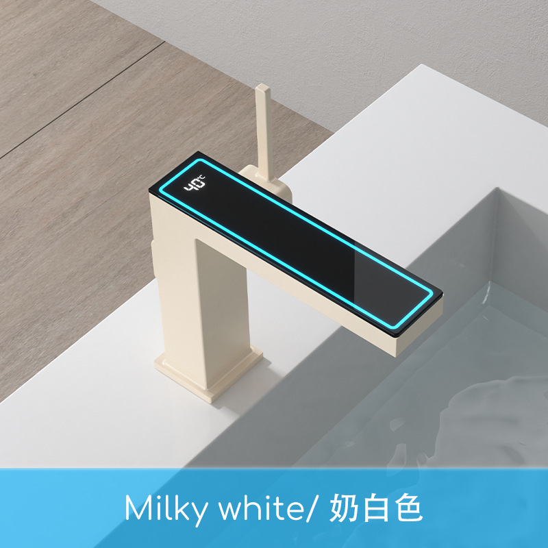 지능형 디지털 디스플레이 분위기 램프 분지 뜨겁고 차가운 총 회색 수도꼭지 욕실 캐비닛 우유 화이트 블랙 골드 수도꼭지