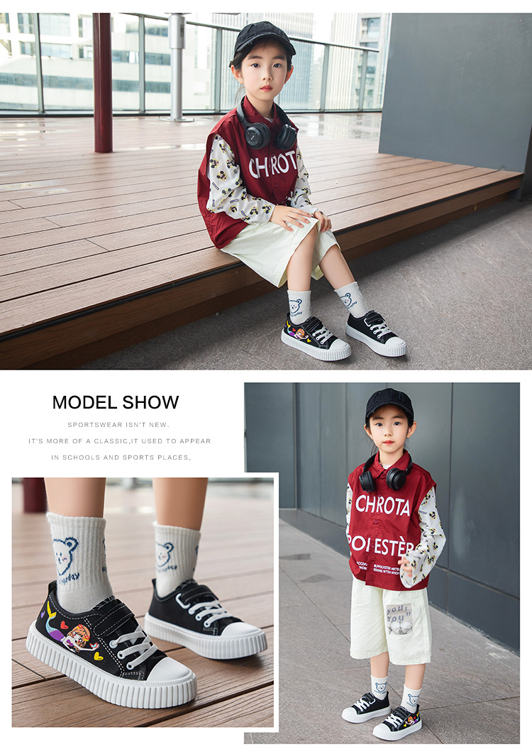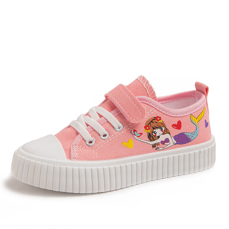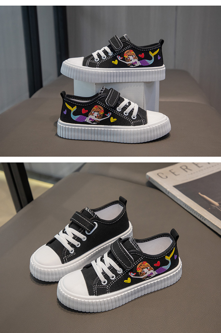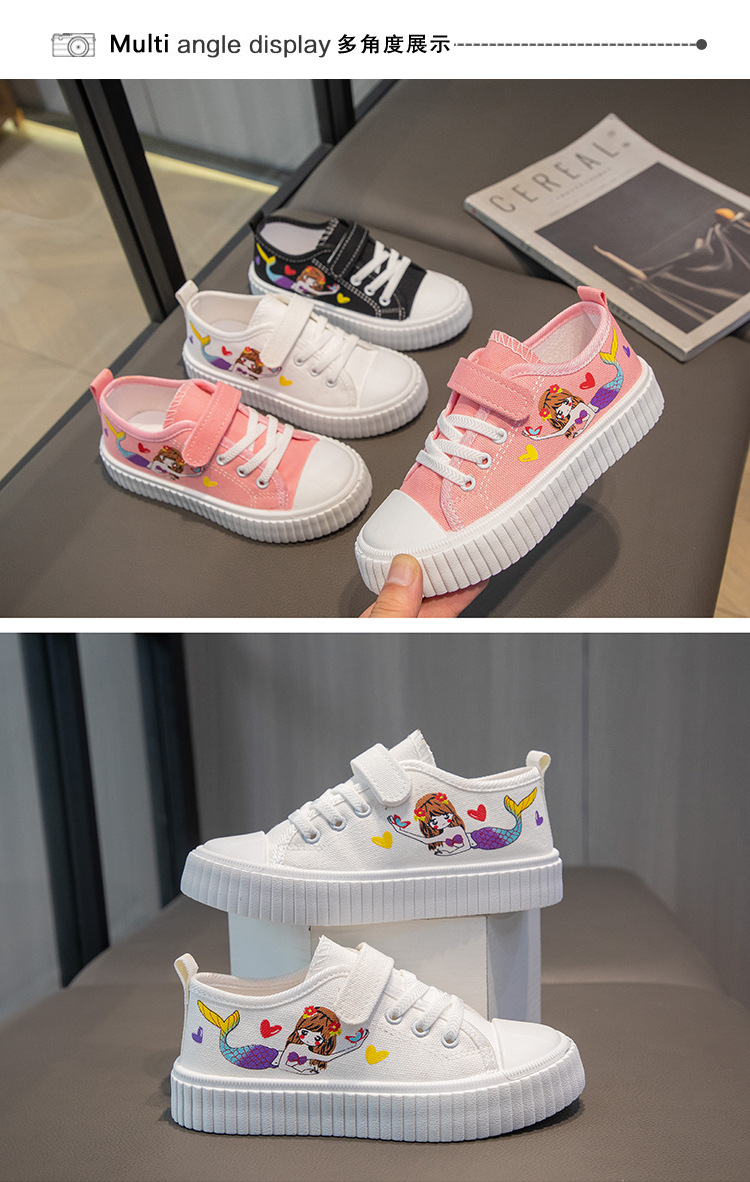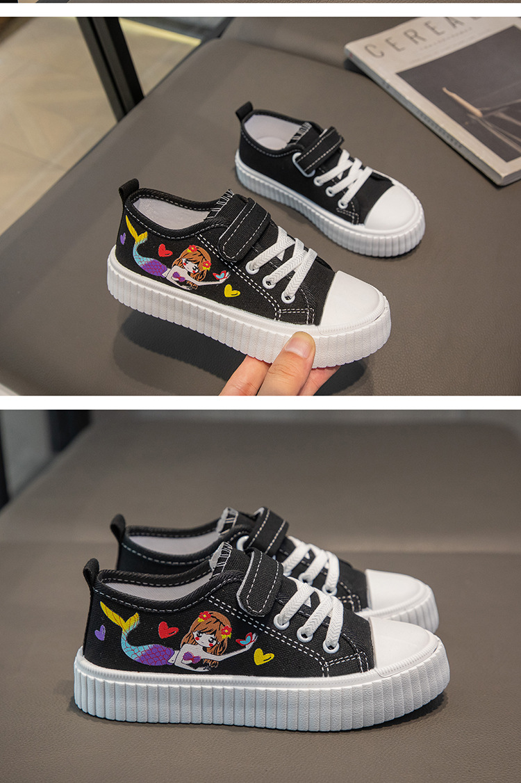 어린 소녀 신발 캔버스 신발 2024 봄과 가을 새로운 어린이 캐주얼 신발 헝겊 신발 소년 보드 신발 여름
